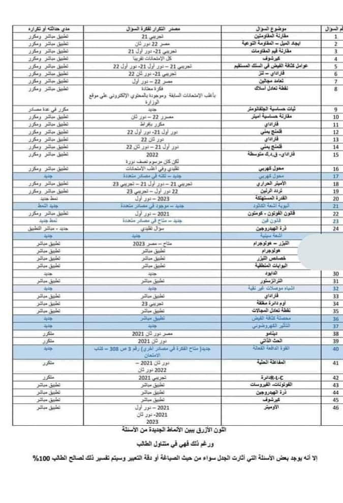 ونحتوي امتحانات الثانوية العامة 2024 في الفيزياء على 30 في المائة أسئلة لحل المشكلات والإبداع، و30 في المائة أسئلة للفهم، و40 في المائة للتطبيق.