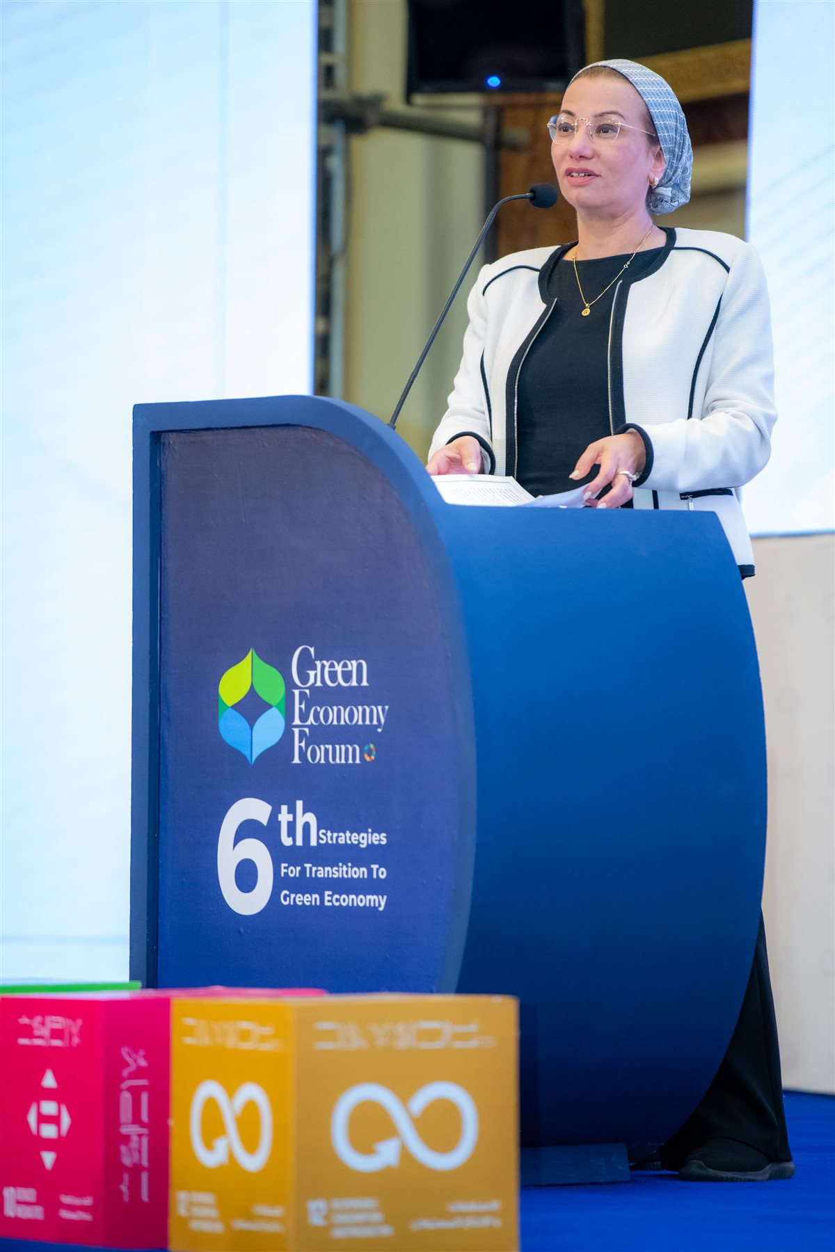 وتحدثت وزيرة البيئة عن خطوات الدولة المصرية وما سيتم اتخاذه خلال الفترة القادمة في ملف الاقتصاد الأخضر، بدءا من تغيير لغة الحوار لقطاع البيئة وإعادة هيكلة القطاع البيئي، بتوجيهات واضحة من رئيس الجمهورية الرئيس عبد الفتاح السيسي، من خلال ٤ محاور يتمثل المحور الأول فيها الحد من التلوث وكيفية التعامل مع تلوث الهواء والمياه والبحار والتربة، والمحور الثاني وهو استدامة الموارد الطبيعية، والمحور الثالث وهو كيفية التعامل مع الملفات والقضايا العالمية والتي لم نكن السبب فيها وتؤثر بصورة مباشرة على حياتنا مثل قضية تغير المناخ والتنوع البيولوجي، والمحور الرابع وهو خلق وتهيئة المناخ الداعم.
