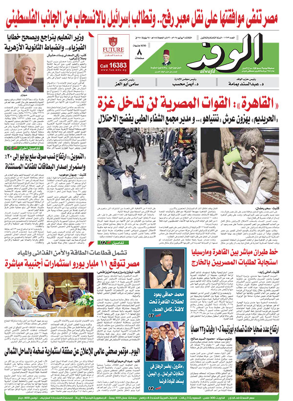 تنشر جريدة الوفد في عددها الصادر، غدًا الثلاثاء، الكثير من الموضوعات والتقارير الإخبارية المهمة، أبرزها: "القاهرة: القوات المصرية لن تدخل غزة".