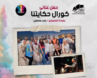 تستضيف ساقية عبدالمنعم الصاوي، حفل غنائي لكورال حكايتنا، بقيادة المايسترو ياسر مصطفى، في الثامنة مساء الجمعة 12 يوليو بقاعة النهر وسعر التذكرة 100 جنيه.