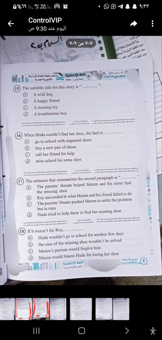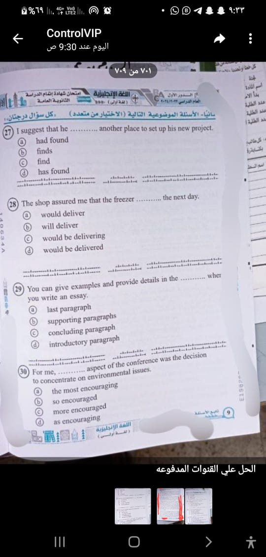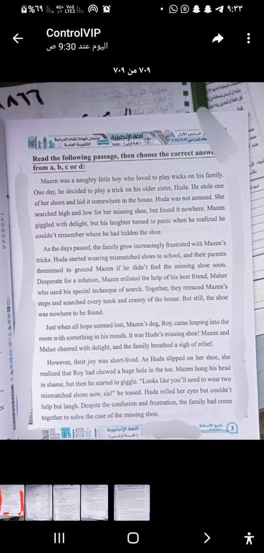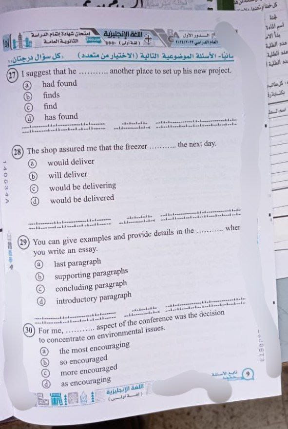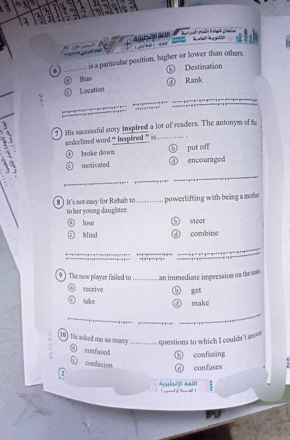 شاومينج ينشر امتحان اللغة الانجليزية للثانوية العامة في القليوبية