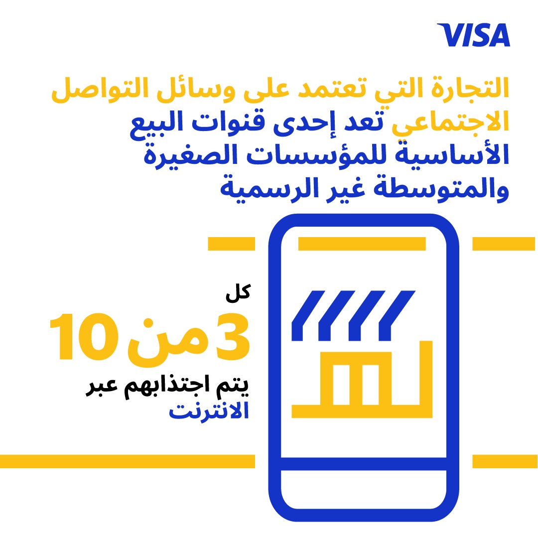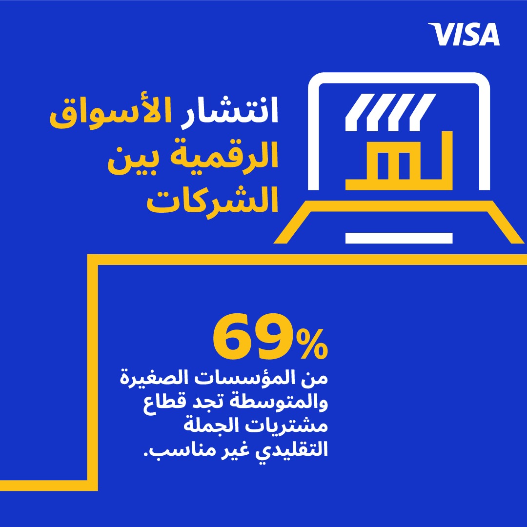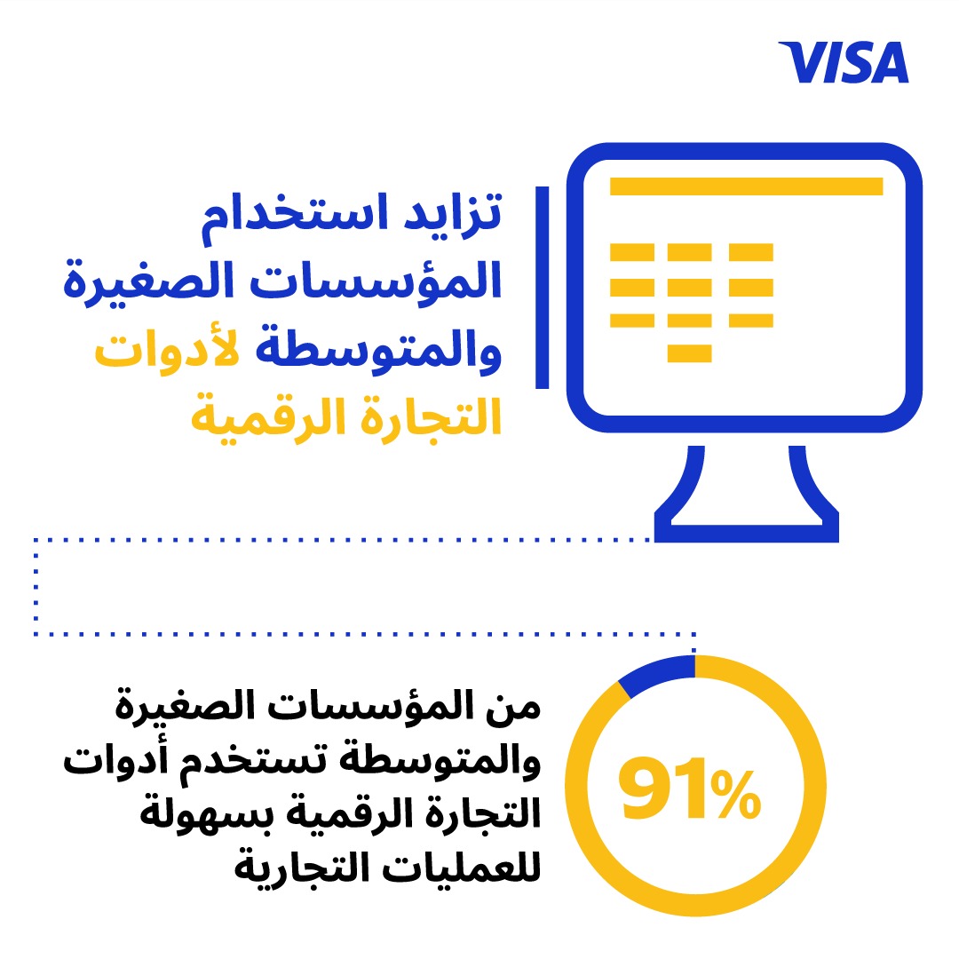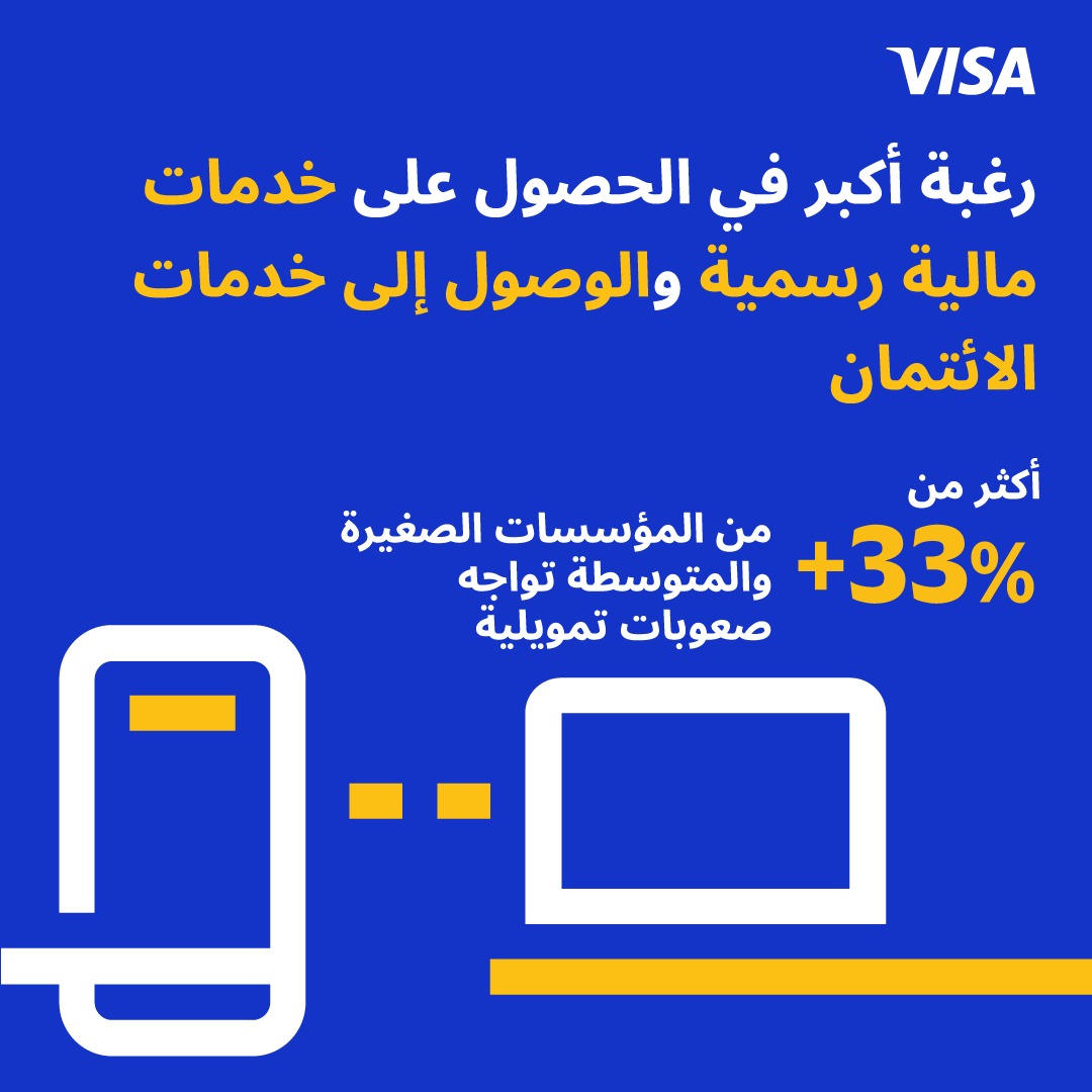 تدرك "فيزا" الدور المحوري للشركات الصغيرة والمتوسطة في دفع النمو الاقتصادي، وتلتزم بالمساعدة في دمجها في الاقتصاد الرقمي. ومن خلال الشبكة المتشعبة، وحلول الأعمال المبتكرة، والخدمات ذات القيمة المضافة، تتعاون "فيزا" مع البنوك المصدرة لتسهيل وصول الشركات الصغيرة والمتوسطة للأدوات الرقمية والخدمات المالية، والذي من شأنه أن يعزز التحول الرقمي للشركات الصغيرة والمتوسطة.