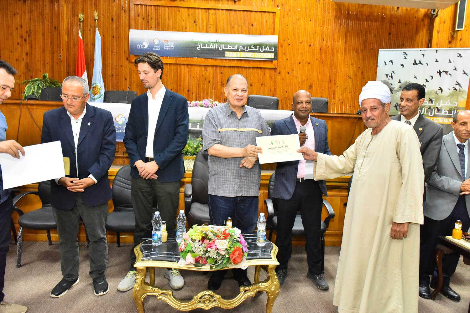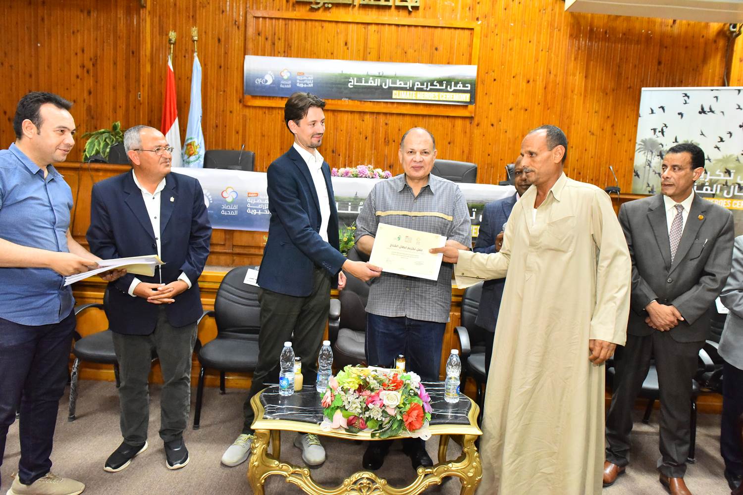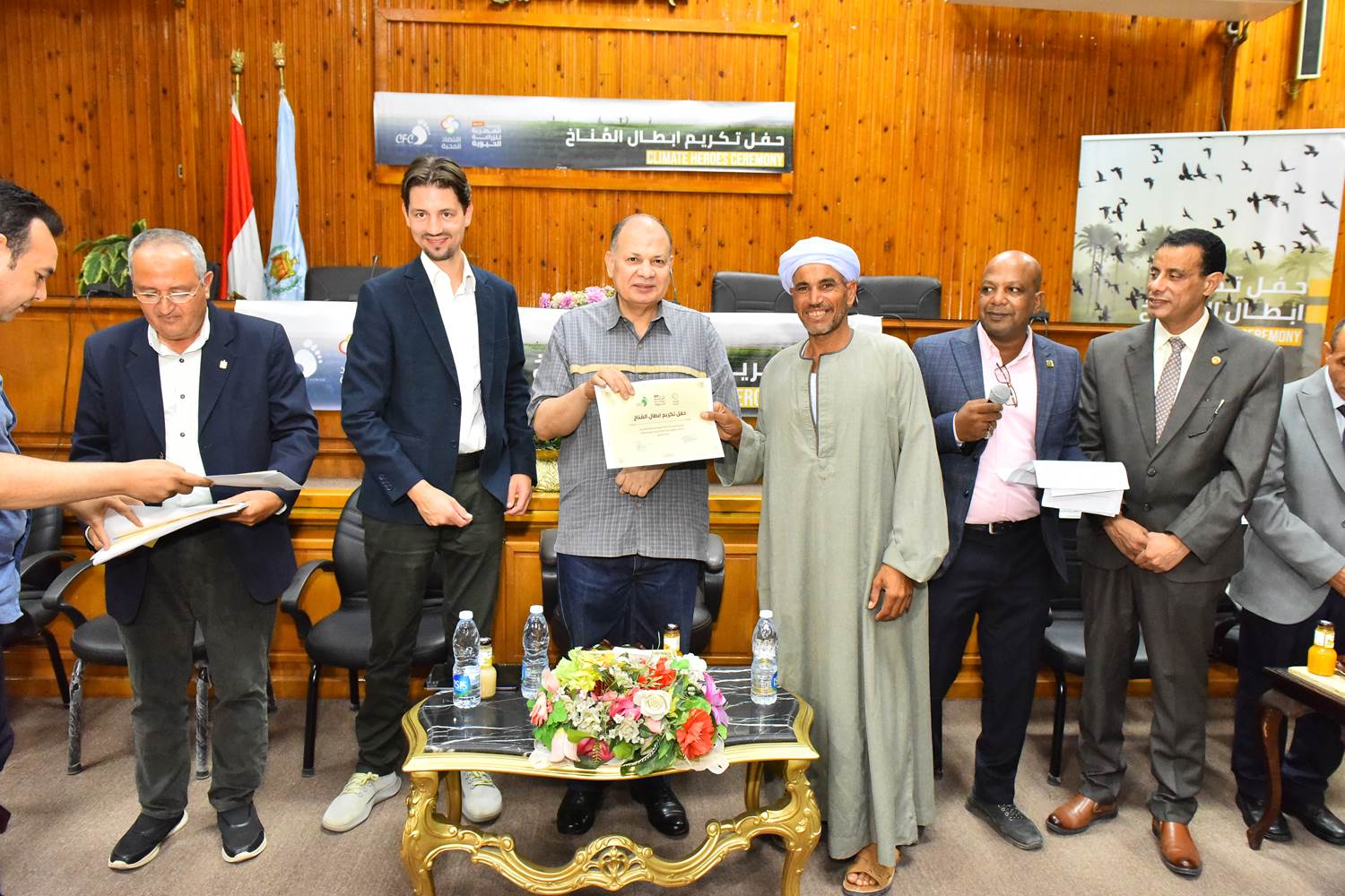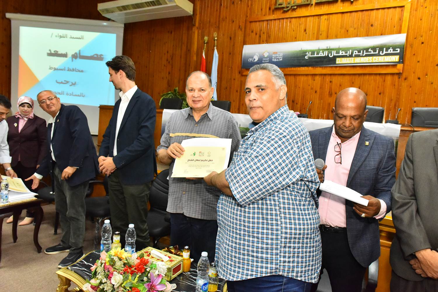 وفي نهاية اللقاء تم تسليم الدروع التذكارية للواء عصام سعد محافظ أسيوط تقديراً لدعمه ومساندته لجهود مبادرة حوافز سندات الكربون والزراعة العضوية، وأنشطة الجمعية المتنوعة فضلاً عن تسليم دروع لوكيل وزارة الزراعة ومدير مديرية الطب البيطري وشهادات التقدير لعدد من المهندسين والمزارعين ومسئولي برنامج التنمية المحلية بصعيد مصر والتكتلات الاقتصادية، وعلى عبد المجيد رئيس جمعية بادر، وشهادة المناخ لمسئولي وحدة التنفيذ التكتلات لجهودهم في دعم المزارعين المحليين في تطبيق الزراعة العضوية والحيوية في مصر.