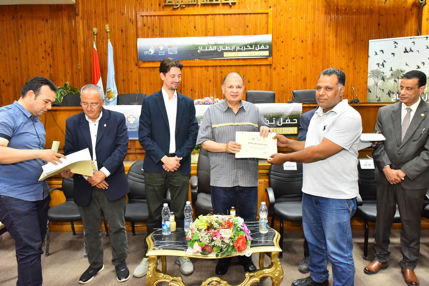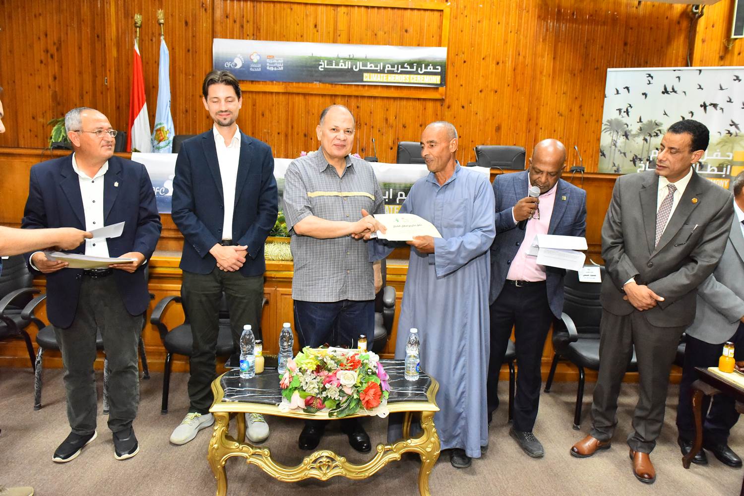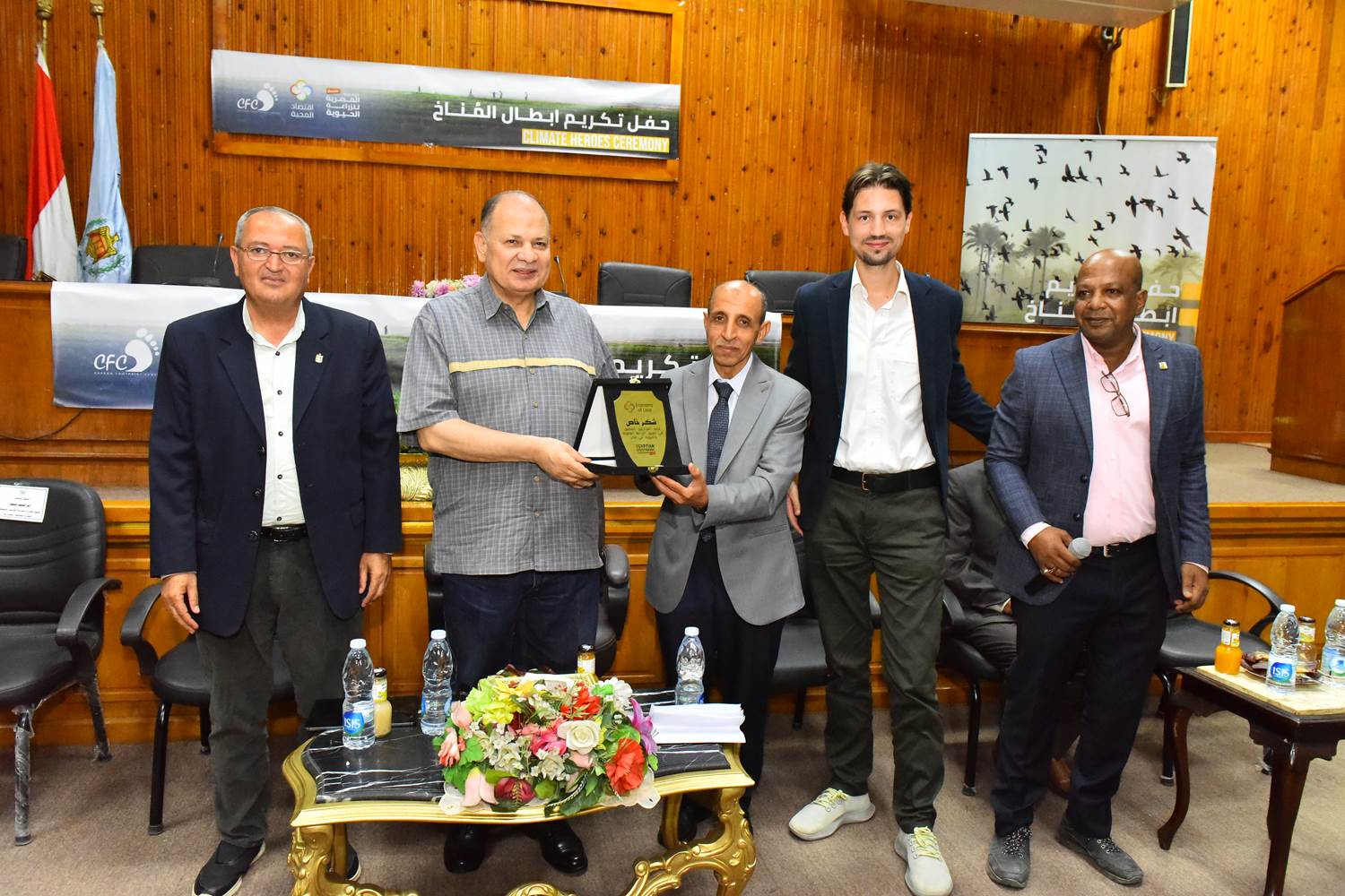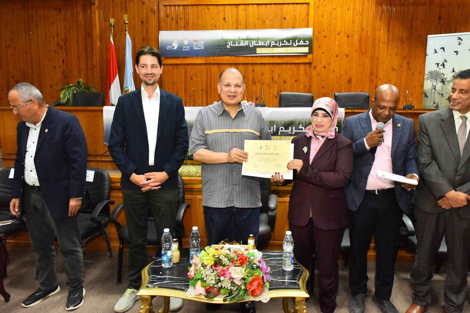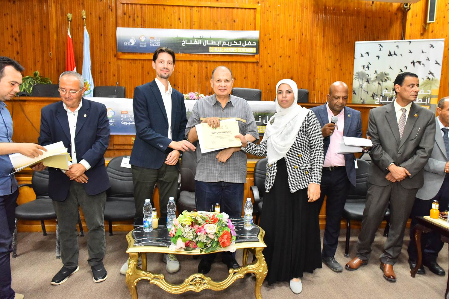 وفي نهاية اللقاء تم تسليم الدروع التذكارية للواء عصام سعد محافظ أسيوط تقديراً لدعمه ومساندته لجهود مبادرة حوافز سندات الكربون والزراعة العضوية، وأنشطة الجمعية المتنوعة فضلاً عن تسليم دروع لوكيل وزارة الزراعة ومدير مديرية الطب البيطري وشهادات التقدير لعدد من المهندسين والمزارعين ومسئولي برنامج التنمية المحلية بصعيد مصر والتكتلات الاقتصادية، وعلى عبد المجيد رئيس جمعية بادر، وشهادة المناخ لمسئولي وحدة التنفيذ التكتلات لجهودهم في دعم المزارعين المحليين في تطبيق الزراعة العضوية والحيوية في مصر.