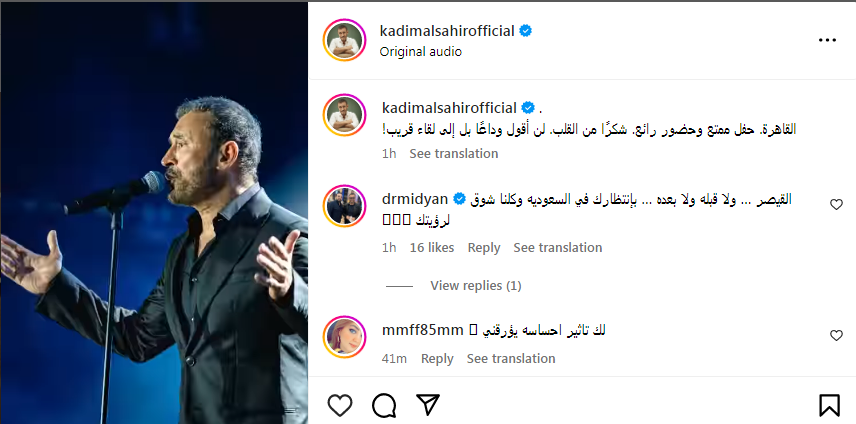 كاظم الساهر واصفا حفل القاهرة: حضور رائع إلى لقاء قريب