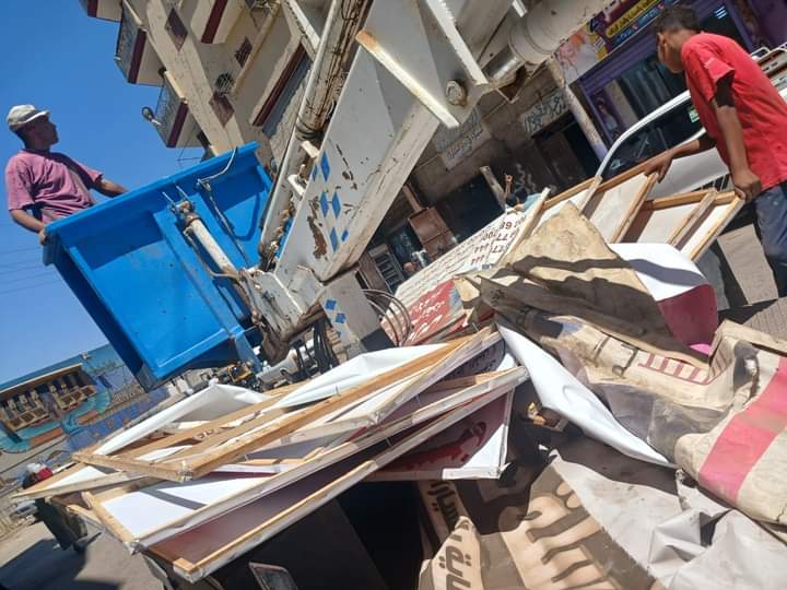 الحملة انطلقت بقيادة عاطف عيسى نائب رئيس المركز محمد حمدى مدير المتابعة عامر هاشم مدير الأزمات، وقسم الاشغالات والاعلانات بالوحدة المحلية للمركز.