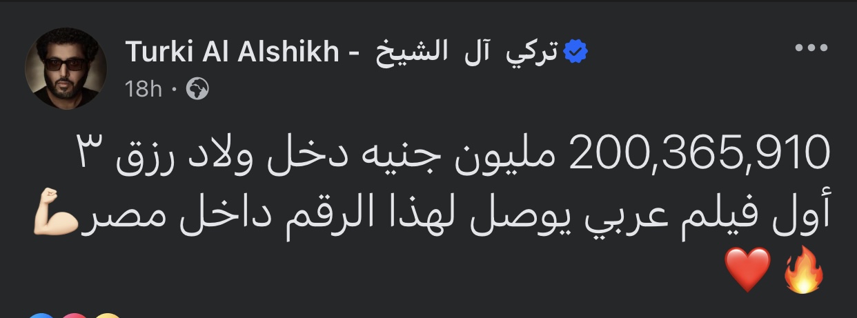 كان المستشار تركي آل شيخ، رئيس الهيئة العامة للترفيه بالمملكة العربية السعودية، علق على إيرادات فيلم ولاد رزق 3، وكتب عبر حسابه بموقع التواصل الاجتماعي "فيسبوك":" 200,365,910 مليون جنيه دخل ولاد رزق ٣ أول فيلم عربي يوصل لهذا الرقم داخل مصر ".