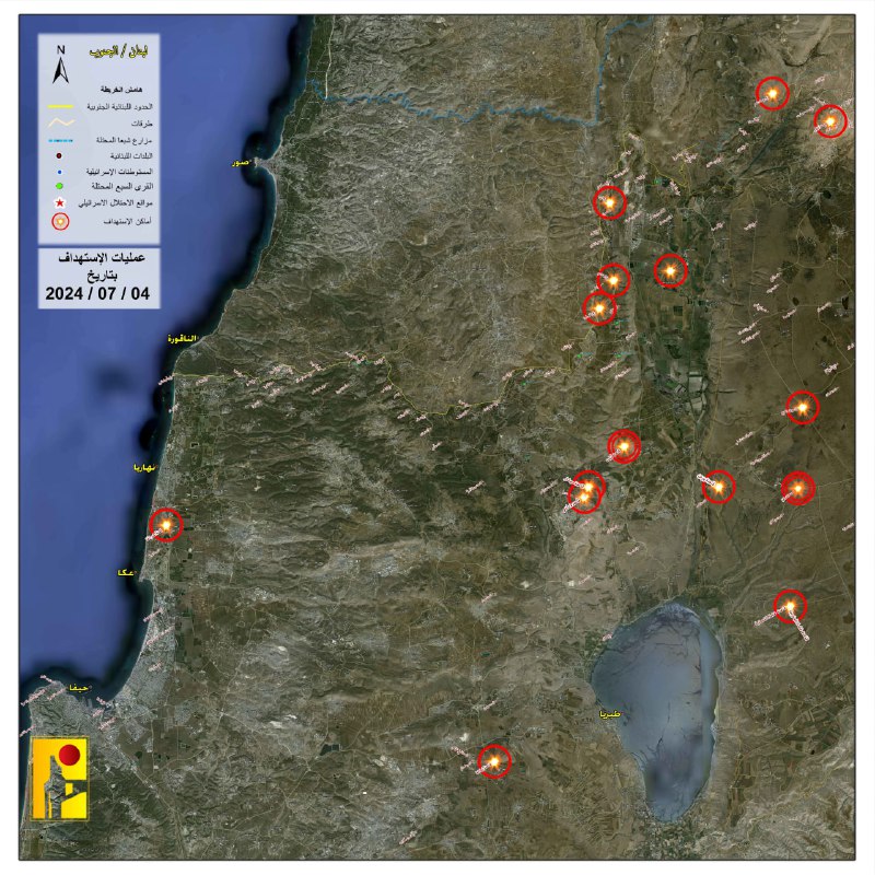 1 - تموضع مستحدث لجنود العدو الإسرائيلي في مستعمرة ‏كفر بلوم بصلية من صواريخ الكاتيوشا كردٍ على ‌‏‌‏اعتداءات العدو على القرى الجنوبية الصامدة والمنازل الآمنة، ‏خصوصًا بلدة شبعا وإصابة امرأة مدنية.