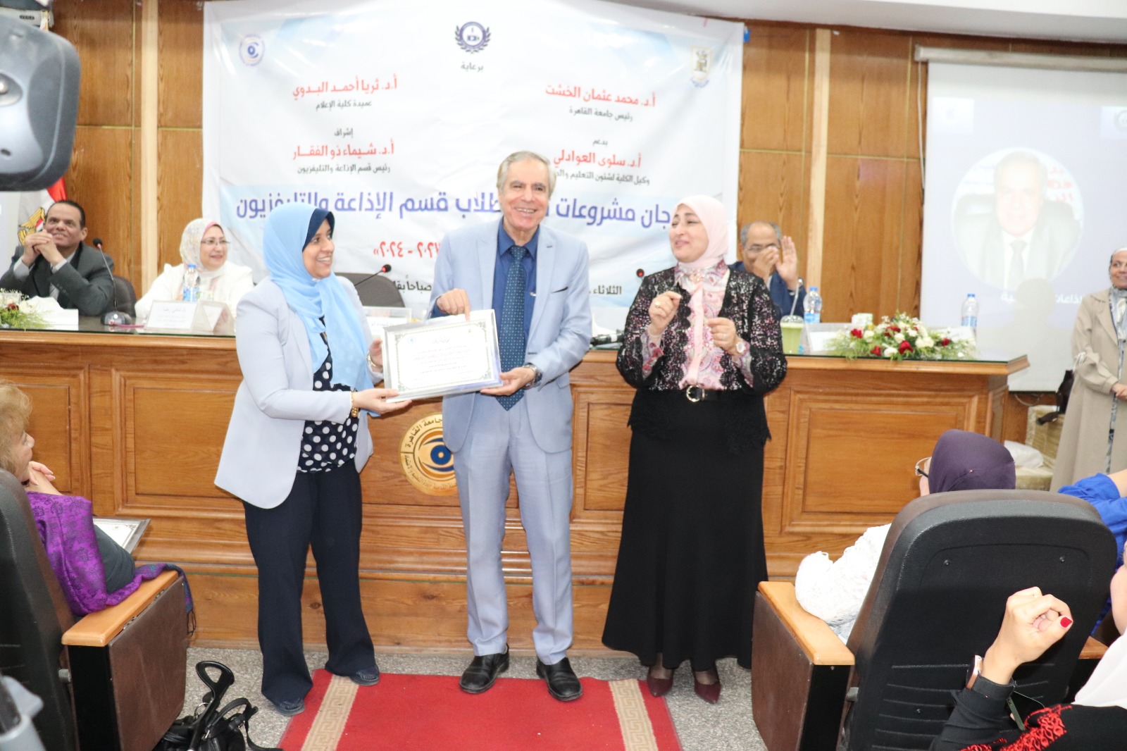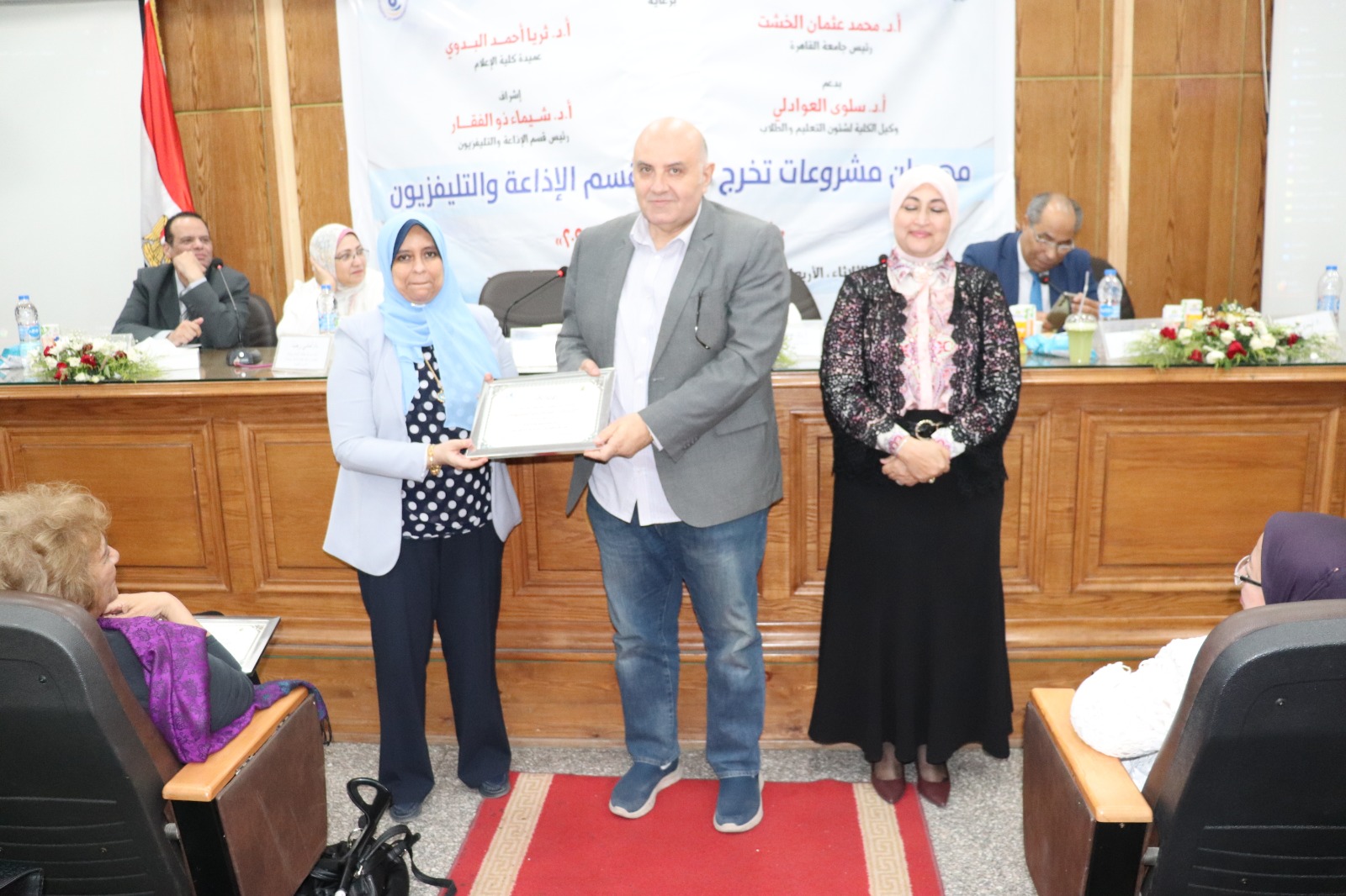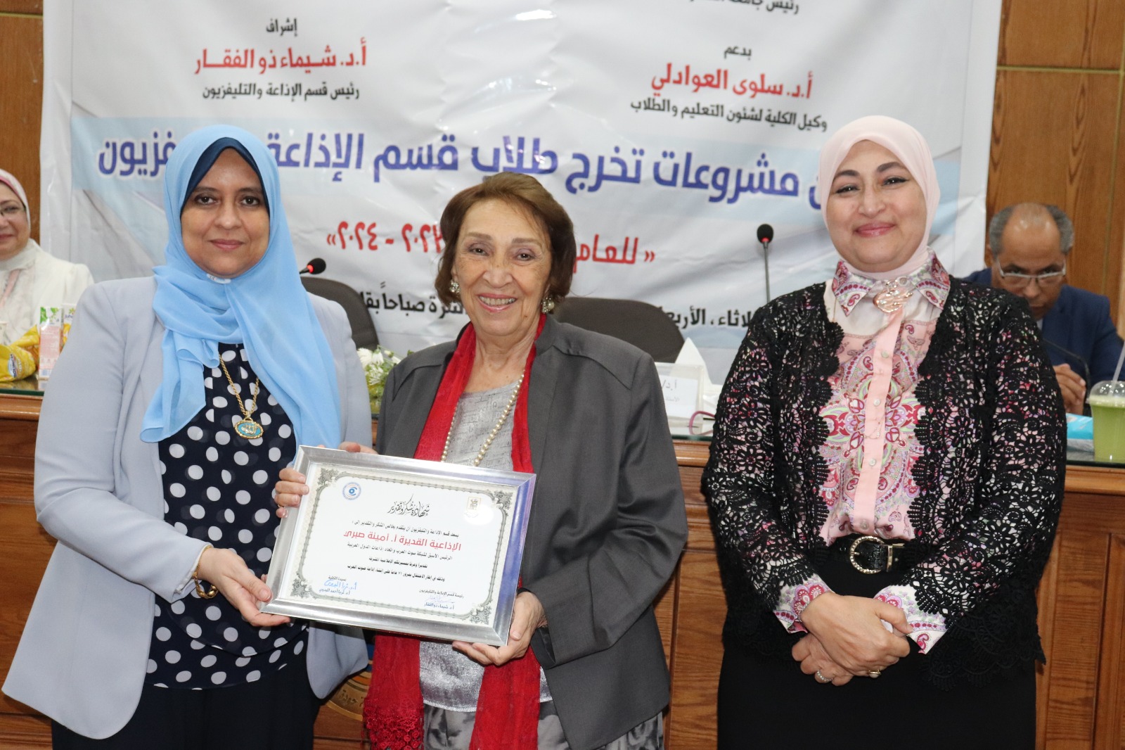 جاء ذلك في إطار الاحتفال بتخريج دفعة جديدة من قسم الإذاعة والتليفزيون حيث تم تكريم الإذاعيين ممن تقلدوا رئاسة صوت العرب، وهم (الإذاعية الكبيرة أمينة صبري، والإذاعية الكبيرة نبيلة مكاوي، والإذاعية الدكتورة لمياء محمود، والإذاعية منال هيكل، ومحمد مرعي ومحمد فهيم وزينهم البدوي) وسط حضور جماهيري من أعضاء هيئة التدريس بالكلية والطلاب والخبراء والممارسين.