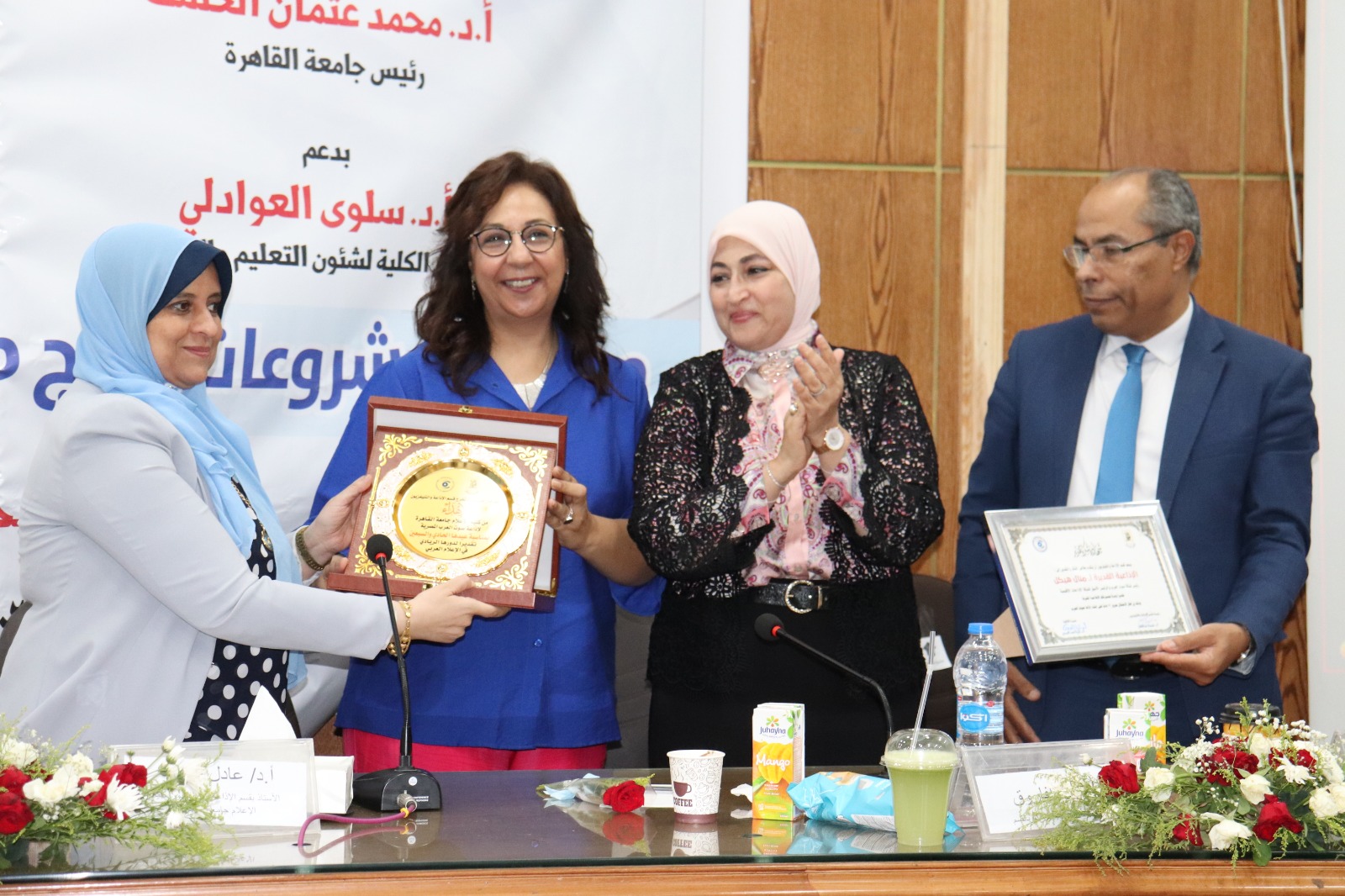 وقامت الدكتورة ثريا البدوي عميدة الكلية بإهداء درع الكلية لإذاعة صوت العرب مثمنين دورها الريادي في دعم الهوية والوحدة العربية.