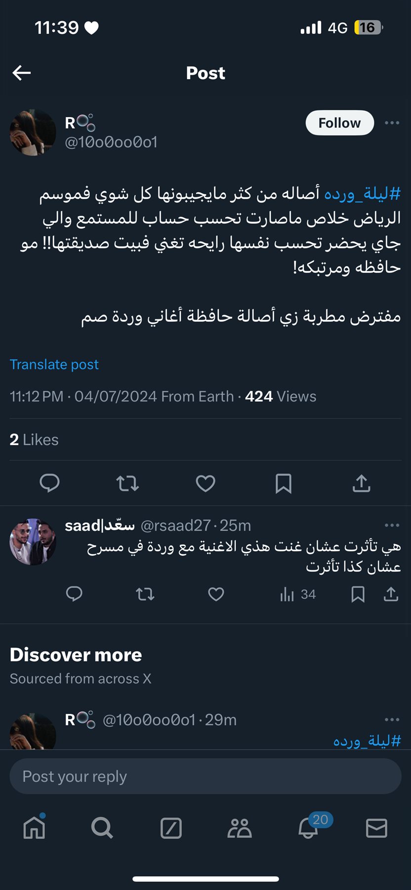 انصدم رواد مواقع التواصل الاجتماعي خاصة موقع "اكس" تويتر سابقًا، بسبب التوتر الملحوظ على أصالة أثناء غنائها أغنية الافتتاح لحفل "ليلة وردة" وانهالت عليها التعليقات والتي جاءت كالتالي، "أصالة من كثر ما يجيبونها كل شوي فموسم الرياض خلاص ما صارت تحسب حساب للمستمع والي جاي يحضر تحسب نفسها رايحة تغني فبيت صديقتهامو حافظة ومرتبكة مفترض مطربة زي أصالة حافظة أغاني وردة صم"، "الأغاني الطربية مش حلوة بصوت أصالة"، "اختيار أصالة غير موفق"، "أصالة متوترة كتير".