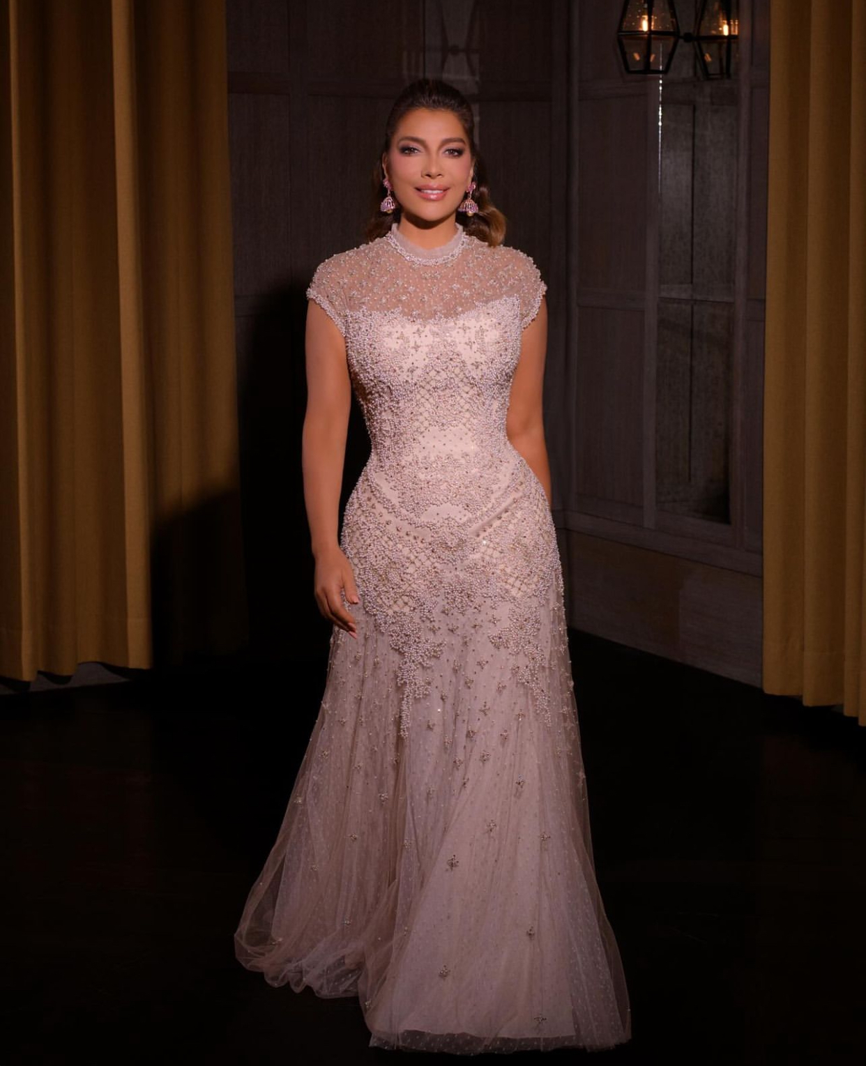 أصالة تشعل حفل ليلة وردة بإطلالة راقية ومكياج جذاب