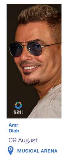 يقام حفل عمرو دياب في 10 أغيسطس داخل المنطقة الخاصة بالحفلات، وسيتم طرح التذاكر إلكترونيًا قريبًا.