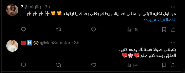 وانهالت التعليقات الإيجابية والتي مدحت في أدائها وجاءت كالتالي، " ليلة وردة بالنسبة لي ولكثير هي وقوف أصالة عالمسرح"، " عظمه على عظظمه يافنانه"، "أصالة أبدعتي"، "من اول اغنيه اثبتي ان مافي احد يقدر يطلع يغني بعدك يا ايقونه"، "ملكه ونجمه وقمر يا ايقونه الكون كله".