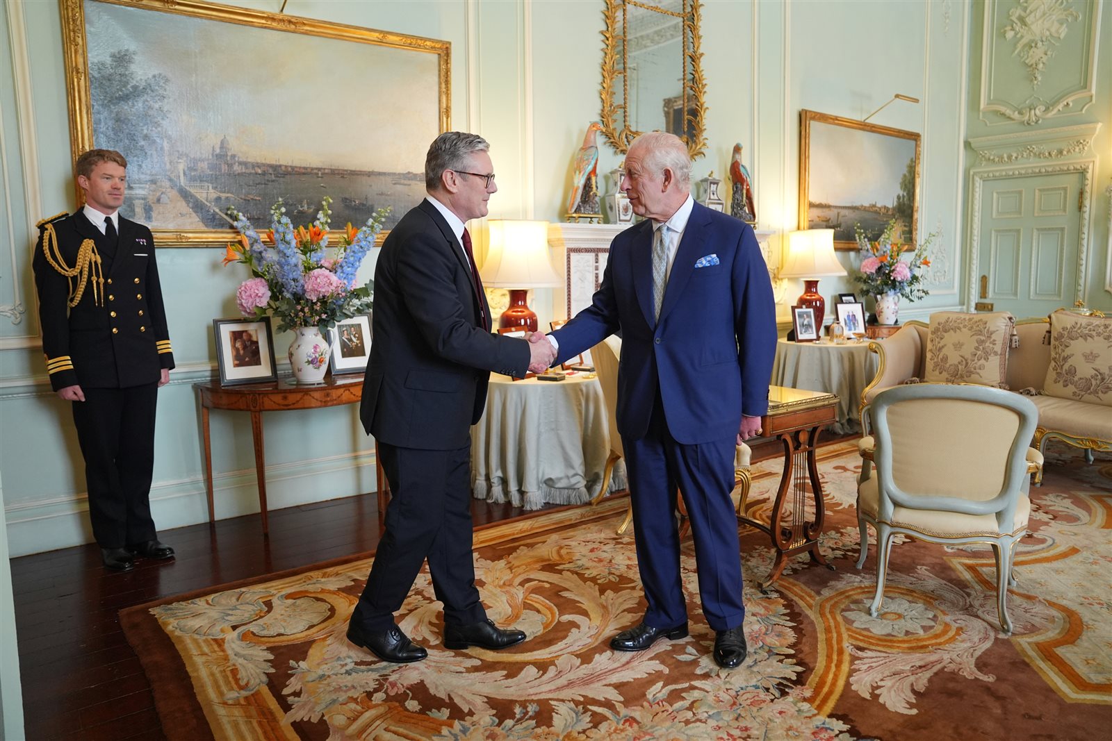 ونشر القصر صورة تظهر الملك مصافحًا ستارمر الذي حقق حزبه فوزًا ساحقًا في الانتخابات، وفق فرانس برس.
