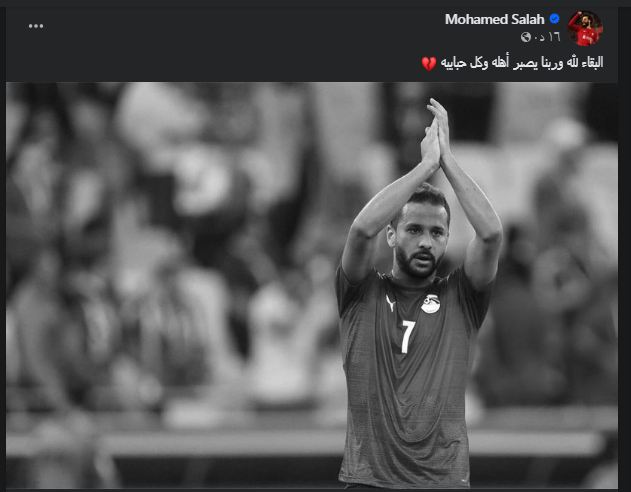 وكتب صلاح عبر حسابه الرسمي على موقع التواصل الإجتماعي “فيسبوك”:" البقاء لله وربنا يصبر أهله وكل حبايبه".