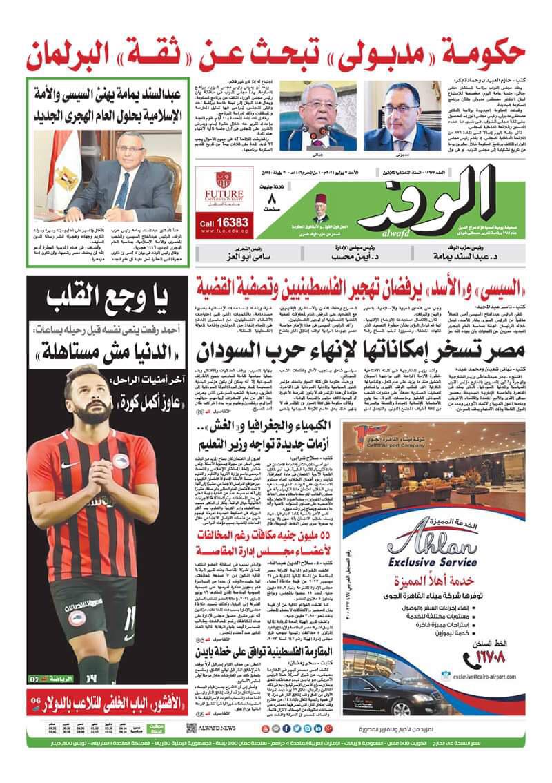 تنشر جريدة الوفد في عددها الصادر، غدًا الأحد، الكثير من الموضوعات والتقارير الإخبارية المهمة، أبرزها: حكومة “مدبولي” تبحث عن “ثقة” البرلمان