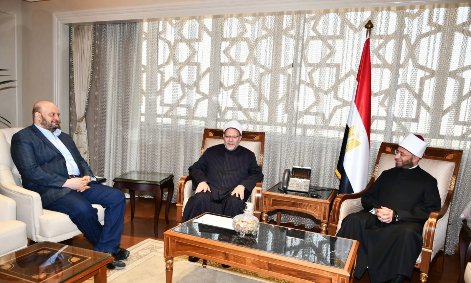 وزير الأوقاف يستقبل مفتي الجمهورية ونقيب الأشراف