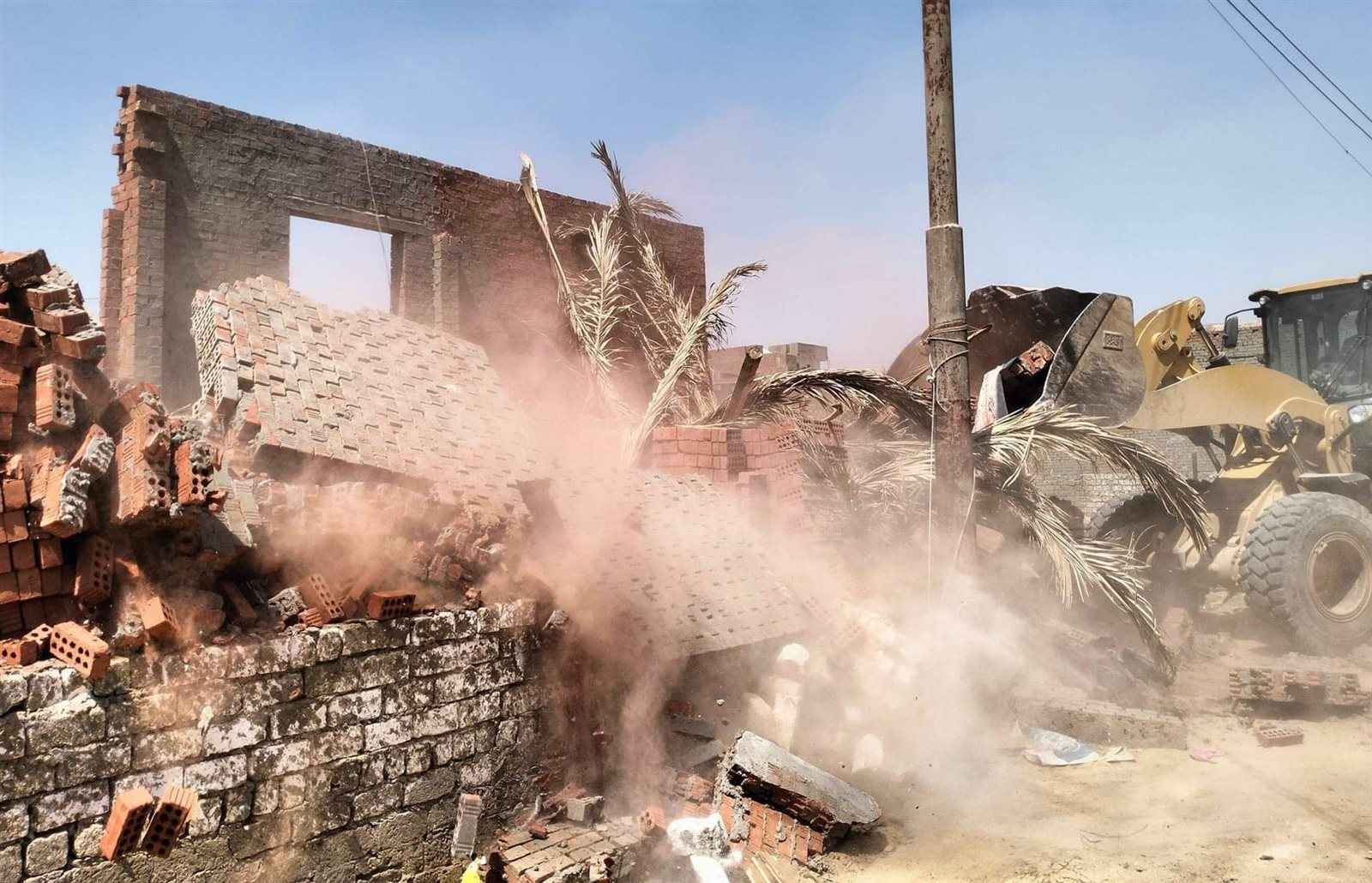 إزالة التعديات ومصادرة مواد البناء بمركز طامية