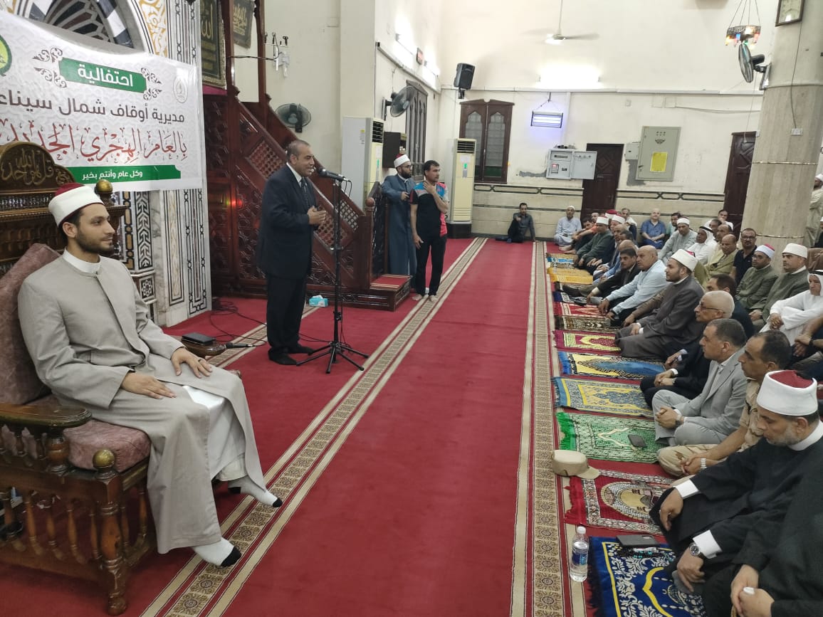 شهد اللواء دكتور خالد مجاور، محافظ شمال سيناء، الليلة، احتفال مديرية الأوقاف بالعام الهجري الجديد 1447 هـ، في مسجد النصر بمدينة العريش، بحضور اللواء عاصم سعدون نائب المحافظ، اللواء اسامه الغندور، سكرتير عام المحافظة، أعضاء المجموعة البرلمانية، ورؤساء مجالس المدن والقيادات التنفيذية والدينية من الازهر والاوقاف ومنطقة الوعظ.