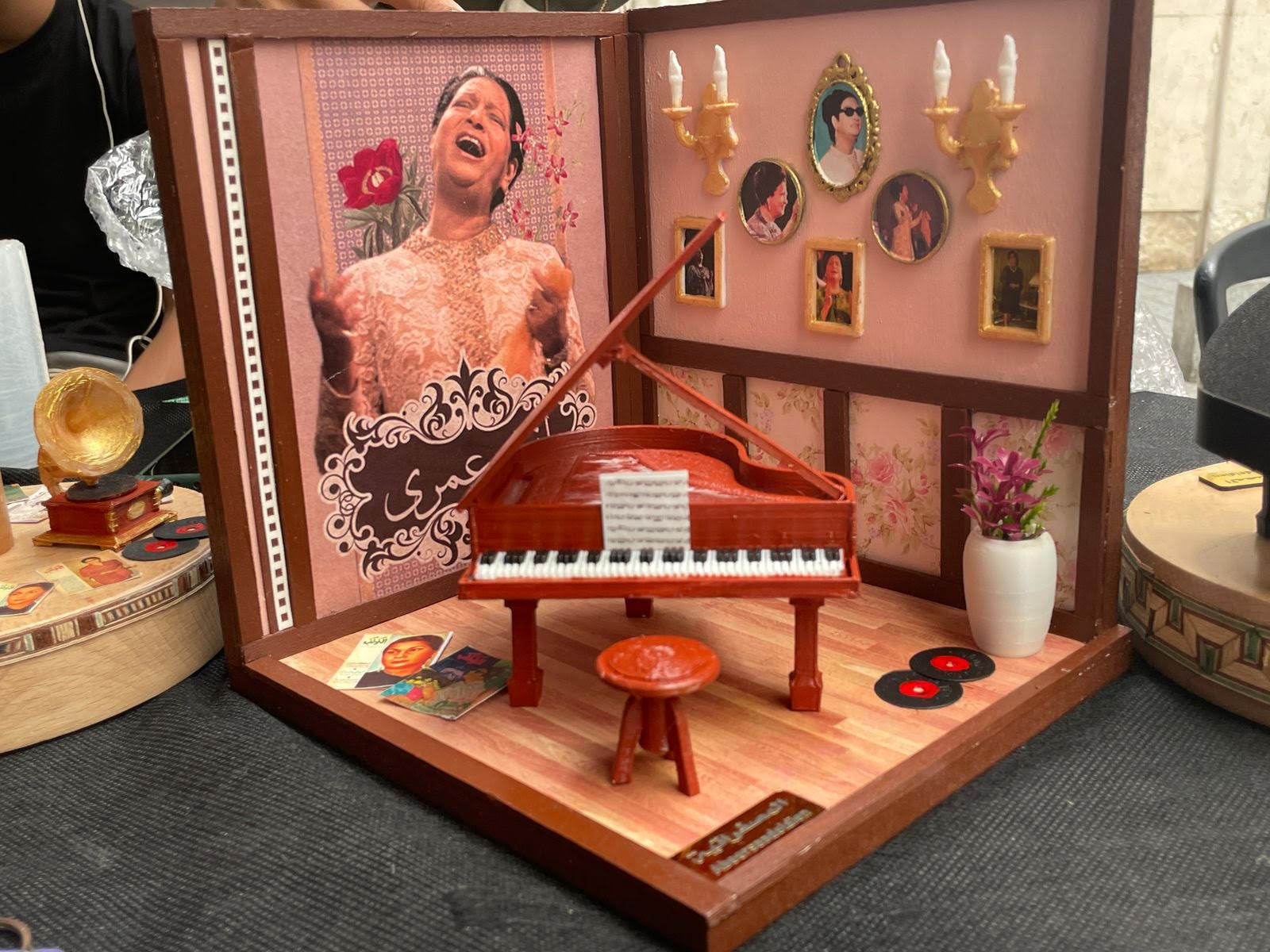 ومن جانبها أشارت نانسي عمار، أخصائي تراث أول وتواصل حضاري بالمتحف، أن الفعالية تضمنت مجموعة من الورش الفنية والتعليمية والمعارض التي تعرض المقتنيات والأدوات والتحف التراثية النادرة لسيدة الغناء العربى أم كلثوم، من بينها معرض مستنسخات وصور ولقطات من أفلامها السينمائية، وذلك بالتعاون مع قاعة الموسيقى بدار الكتب والوثائق القومية، بالإضافة إلى معرض للإسطونات وشرائط الكاسيت الخاصة بأغانيها وعرض للجرامافون بمشاركة من شركة القاهرة للصوتيات والمرئيات، كما يضم المعرض مجموعة من نماذج من العملات والميداليات التذكارية التى صممت تخليداً لذكراها بالتعاون مع مصلحة الخزانة العامة وسك العملة، بالإضافة إلى مجموعة كتب وطوابع تذكارية بمشاركة نادى الرواد المصرى والفنانة التشكيلية هدى قدرى، ومعرض فنى يضم لوحات ومجسمات لكوكب الشرق للفنانة يسرا عبد الرحمن.