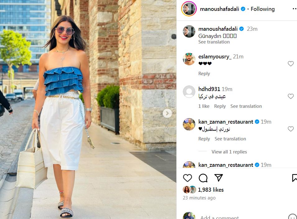 خضعت الفنانة منة فضالي لجلسة تصوير جديدة اثناء قضاء عطلتها الصيفية وإجازتها في دولة تركيا لتسحر القلوب بإطلالتها الناعمة.