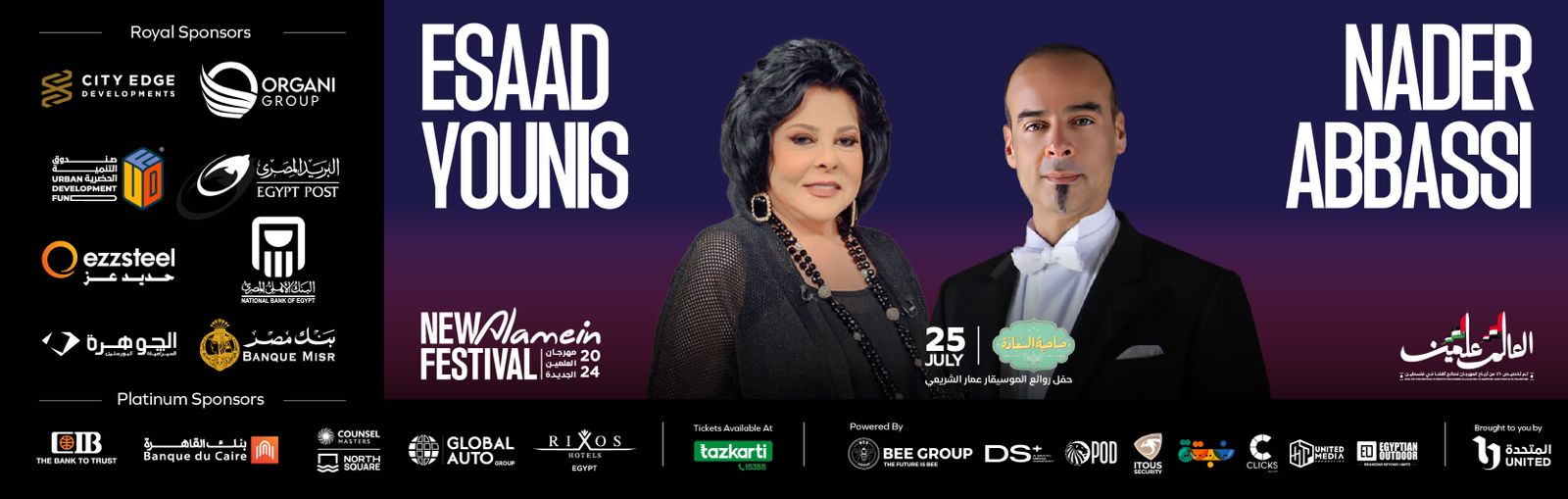 تستضيف إسعاد يونس الموسيقار الكبير نادر عباسي في 25 يوليو داخل المدينة التراثية في العلمين، حيث سيقدم روائع موسيقية للراحل عمار الشريعي.