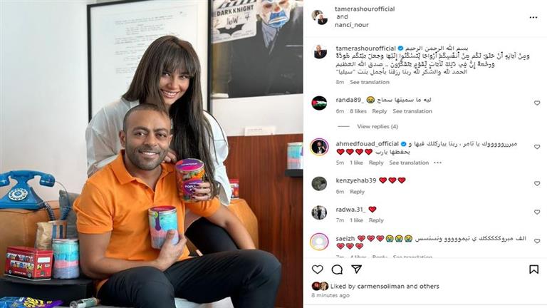 أعلن الفنان تامر عاشور عن استقباله مولودته الأولى من زوجته الإعلامية نانسي نور عبر صفحته الرسمية على موقع تبادل الصور والفيديوهات الأشهر انستجرام.