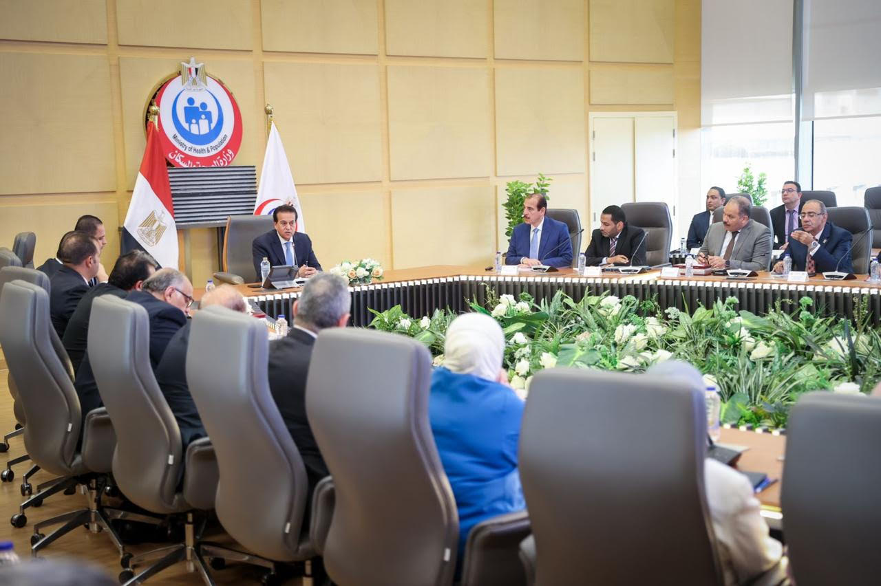 عقد الدكتور خالد عبدالغفار، نائب رئيس مجلس الوزراء ووزير الصحة والسكان، اجتماعه الدوري، مع نوابه وقيادات الوزارة ورؤساء الهيئات، وبمشاركة كافة وكلاء الوزارة بالمحافظات، لمتابعة سير العمل بمختلف ملفات الوزارة، والوقوف على التحديات والمعوقات والعمل على تذليلها، ومناقشة آليات العمل خلال الفترة القادمة لتحقيق أهداف وتكليفات القيادة السياسية، لضمان استمرار تقديم أفضل خدمات طبية للمرضى.