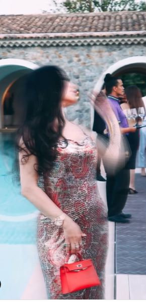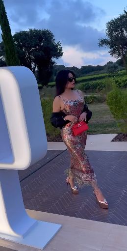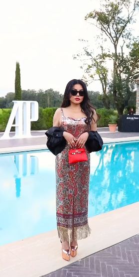 تزينت ببعض المجوهرات الذهبية التي تتناغم مع إطلالتها الساحرة ذات الأشكال الهندية فيما انتعلت صندلًا بكعب عال باللون الذهبي ونسقت معه حقيبة يد صممت من الجلد الطبيعي باللون البرتقالي الغامق لتواكب موضة 2024.