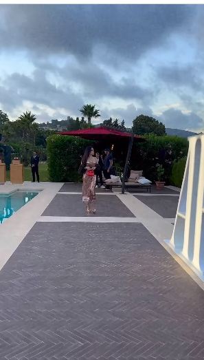 واختارت ترك خصلات شعرها منسدلة فوق كتفيها على طريقة الويفي الواسع ووضعت مكياجًا صاخبًا مرتكزًا على الألوان الترابية مع تحديد عينيها بالكحل والماسكرا السودءا لتعكس جمالهما مع أحمر الشفاه الصارخ.