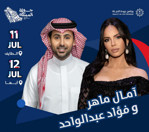 تحيي الفنان آمال ماهر حفلان غنائيان في جولة المملكة، الليلة وغدًا، بين أبها والطائف بالمشاركة مع الفنان فؤاد عبد الواحد .