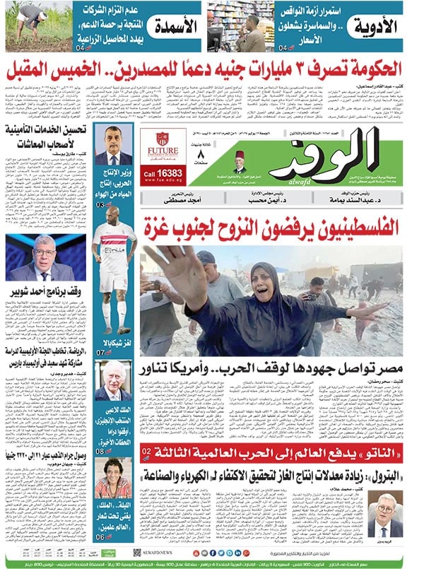 يتضمن عدد الجريدة الكثير من الموضوعات الأخرى، أهمها:
