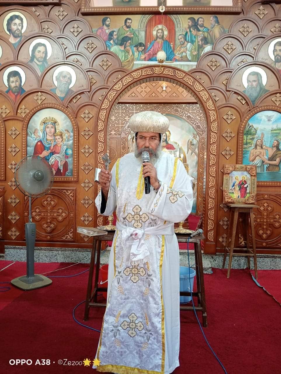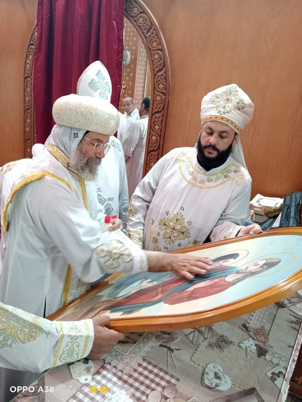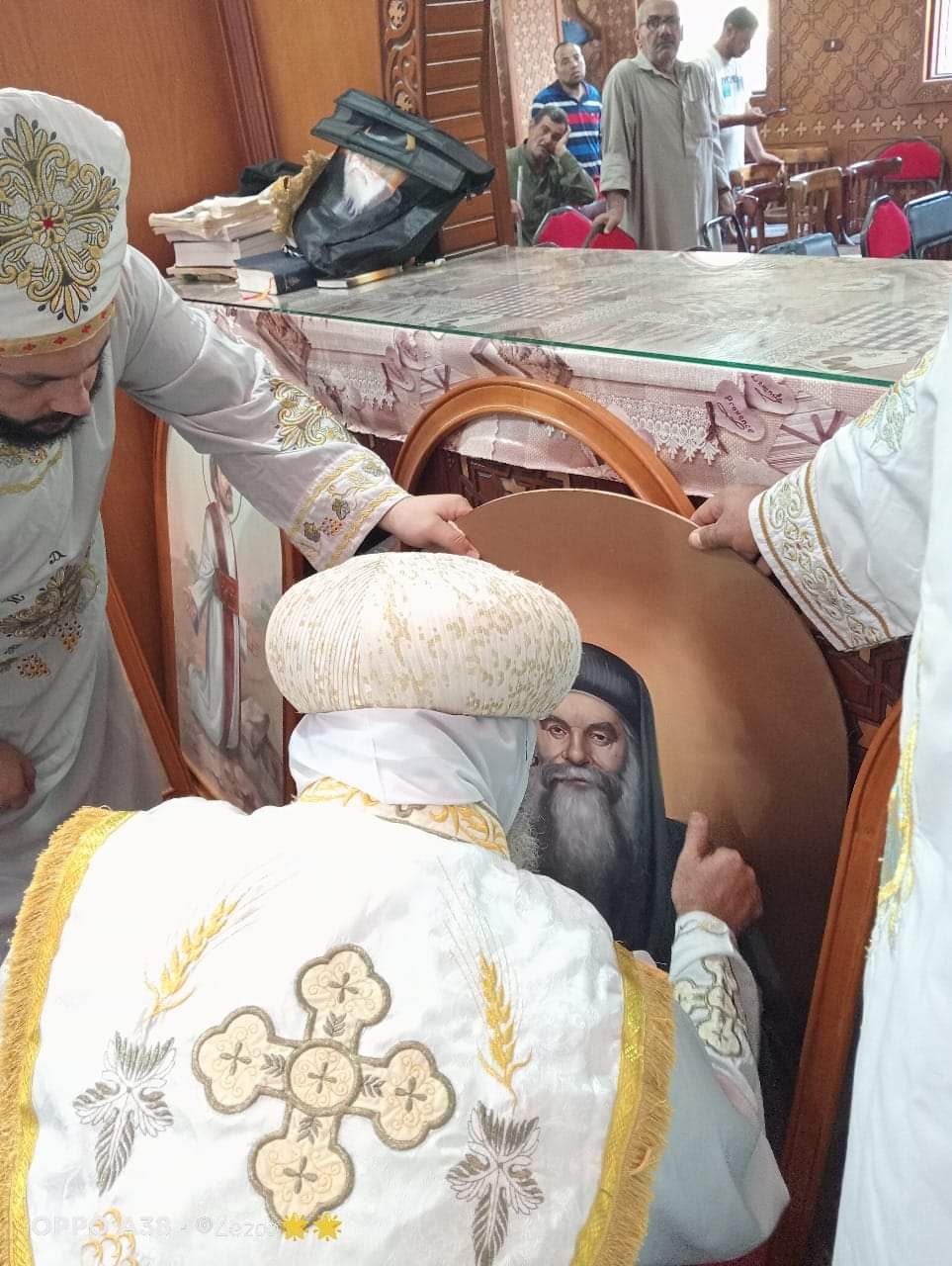 وتخلل اللقاء أيضًا الاحتفال بذكرى استشهاد القديسين بطرس وبولس الرسولين، كما دشن أسقف الأقباط ايقونات الشهيد اسطفانوس والقديس مارجرجس والبابا كيرلس السادس والانبا ابرام اسقف الفيوم والجيزه.