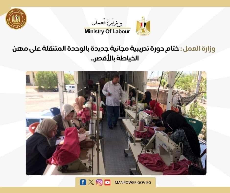 العمل تختتم دورة تدريبية مجانية جديدة بالوحدة المتنقلة على مهن الخياطة بالأقصر