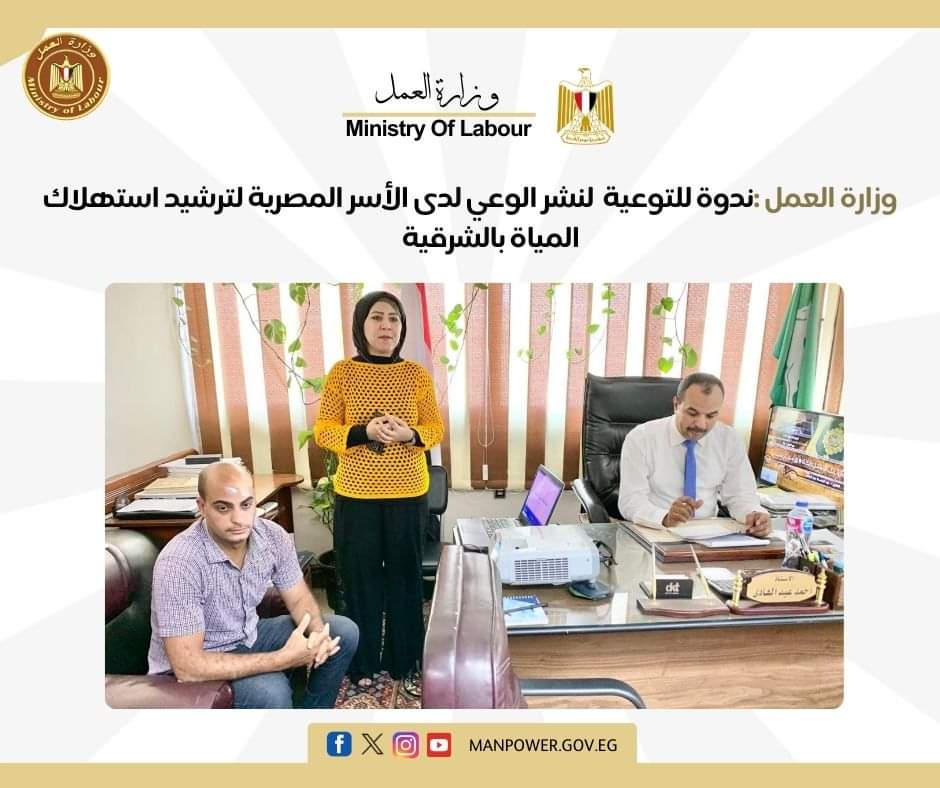العمل تنظم ندوة لنشر الوعي لدى الأسر المصرية لترشيد استهلاك المياه بالشرقية