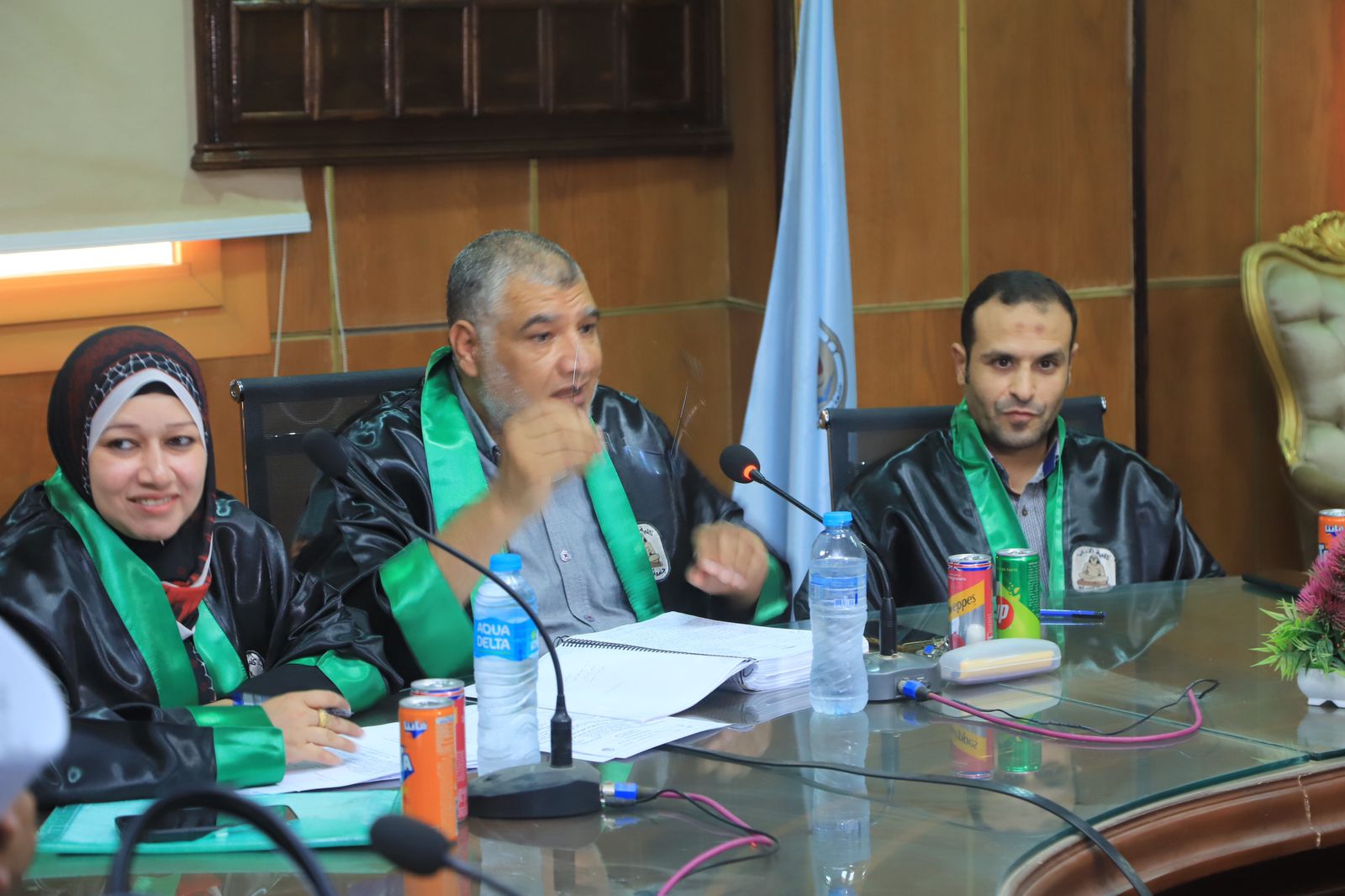 وتكونت لجنة الإشراف والمناقشة والحكم من الأساتذة ، الدكتور عزات شحاته أستاذ الشريعة الإسلامية بكلية دار العلوم جامعة المنيا"رئيسا" والدكتور عبدالله يوسف محمد استاذ الدراسات الاسلاميه المساعد بكلية الآداب بجامعة سوهاج "مناقشا" ، والدكتورة صفاء عبدالرحيم برعى أستاذ الدراسات الإسلامية المساعد بكلية الآداب بسوهاج "مشرفا " ، والدكتورة فاطمة الزهراء صالح احمد استاذ ورئيس قسم الاعلام بكلية الآداب بجامعة سوهاج "مشرفا" .