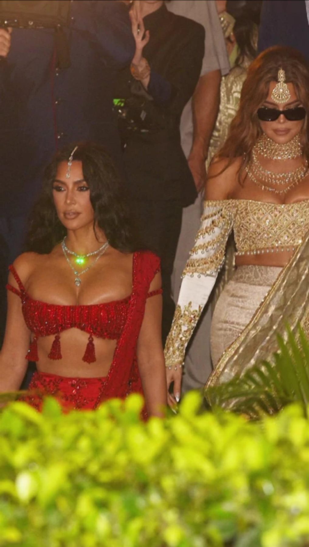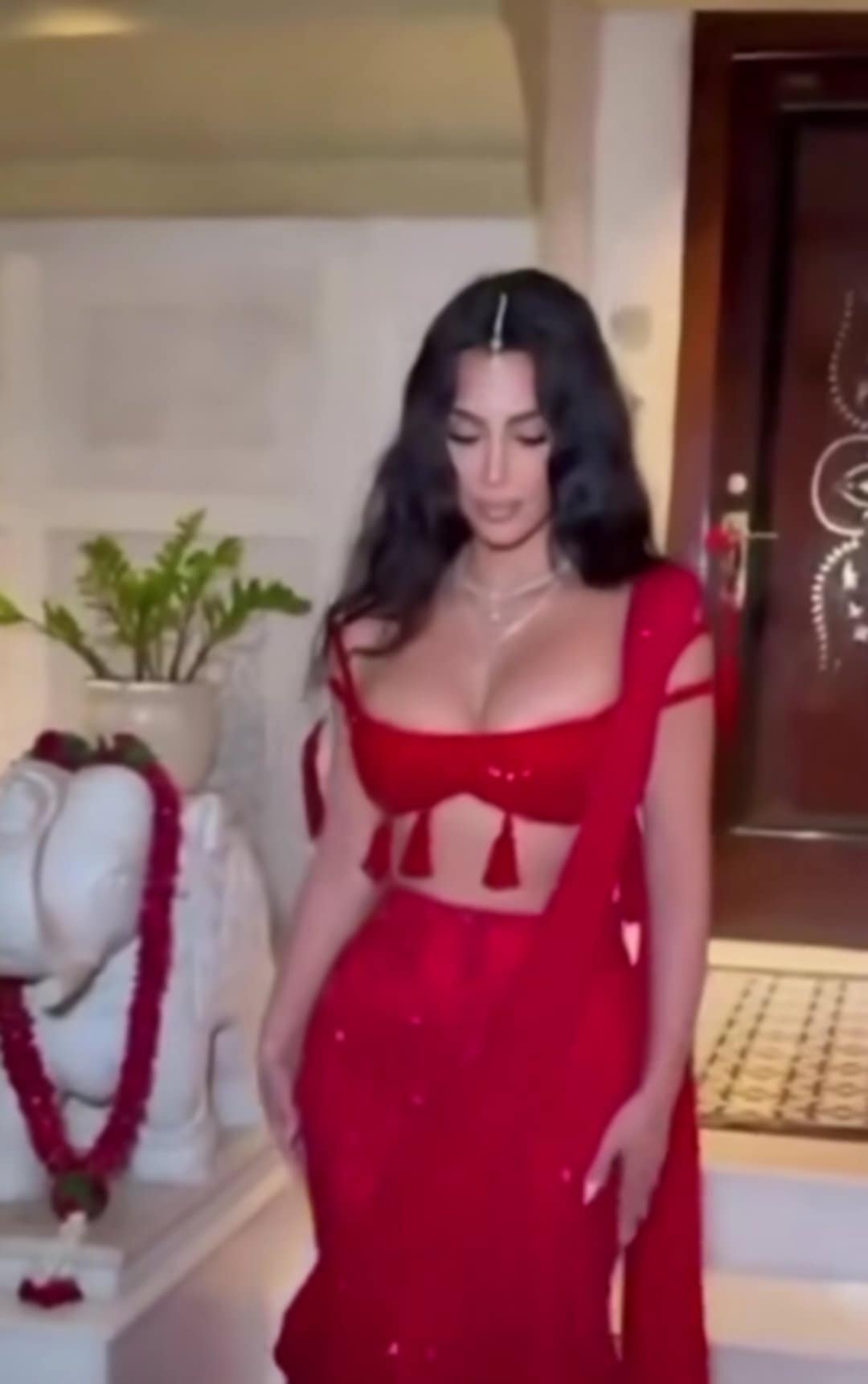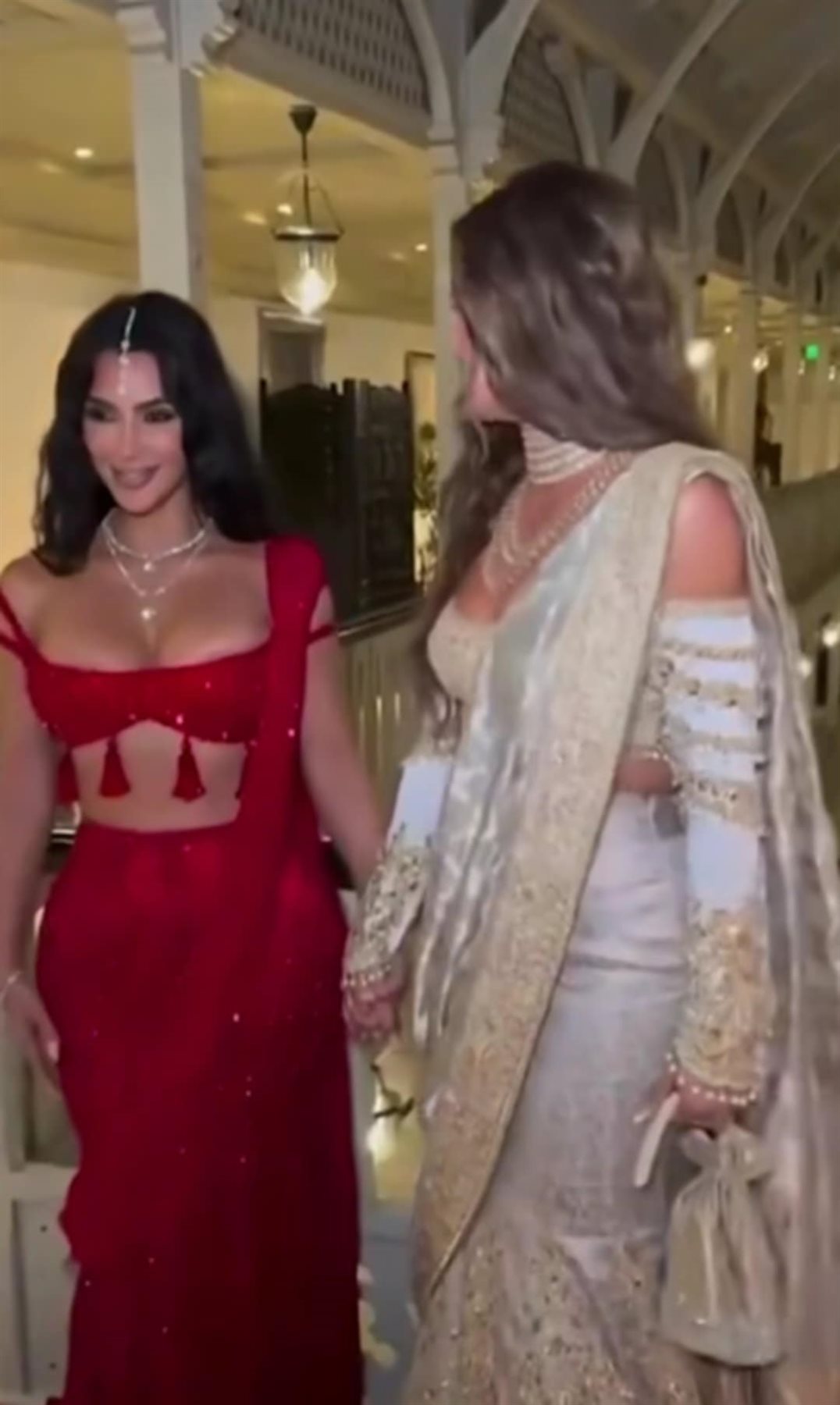 فاجئت نجمة تليفزيون الواقع كيم كاردشيان جمهورها بظهورها الأخير في حفل الزفاف الأسطوري لإبن موكيش أمباني "أنانت أمباني" و"راديكا ميرشانت" المقام بالهند حيث ظهرت النجمة البالغة من العمر43 عام بساري هندي أنيق باللون الأحمر اللامع، وهو ما أكد تخمينات الكثيرون حول ارتداؤها الزي التقليدي الهندي.