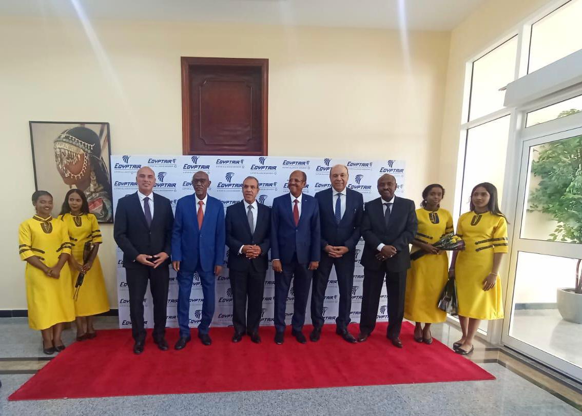 وصلت اليوم أولى رحلات الناقل الوطنى مصر للطيران إلى كل من مدينتى جيبوتي ومقدشيو، على رأس وفد يضم كلًا من الدكتور بدر عبدالعاطي، وزير الخارجية والهجرة وشئون المصريين بالخارج، والدكتور سامح الحفني، وزير الطيران المدني، ولفيف من قيادات وزارات الخارجية والطيران المدنى والتجارة والاستثمار.