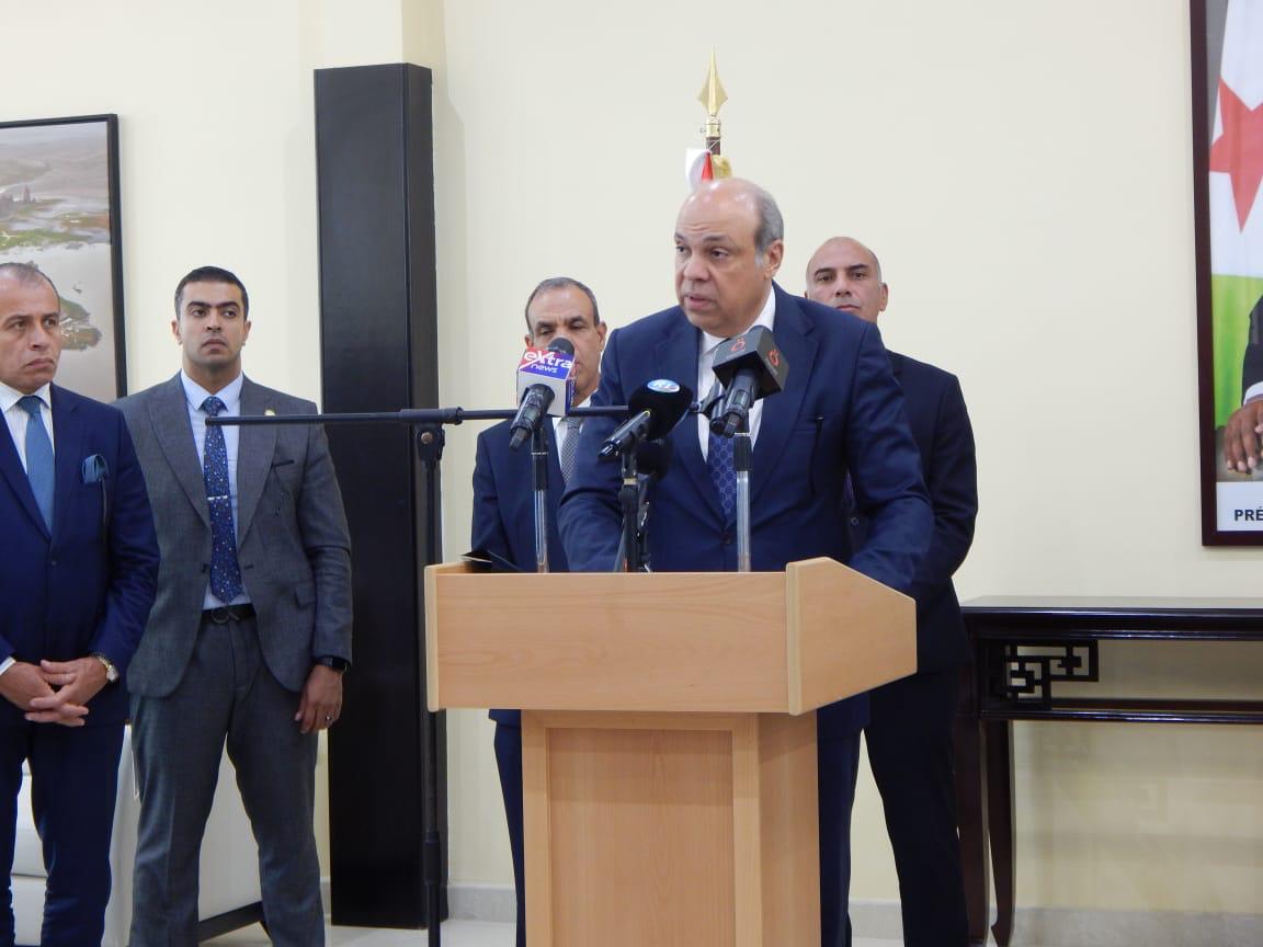 وفي كلمته التي ألقاها الطيار سامح الحفني، وزير الطيران المدني بهذه المناسبة، حيث أكد على أن تدشين أحدث خطوط مصر للطيران إلى البلدين الشقيقين جيبوتي والصومال، يأتى انعكاسًا لخطة قطاع الطيران المدني المصري التى تتمثل في توسيع نطاق التعاون في مختلف أنشطة النقل الجوي مع الأشقاء الأفارقة، خصوصًا في مجالات التدريب وتبادل الخبرات، مضيفًا أن الوزارة تتبنى العديد من المبادرات الأفريقية التي من شأنها تطوير صناعة النقل الجوي الأفريقي، وكذلك تحسين كفاءة الملاحة الجوية من خلال إدارة عمليات المجال الجوي، فضلًا عن فتح مسارات جديدة لتفعيل سوق النقل الجوي الأفريقي.