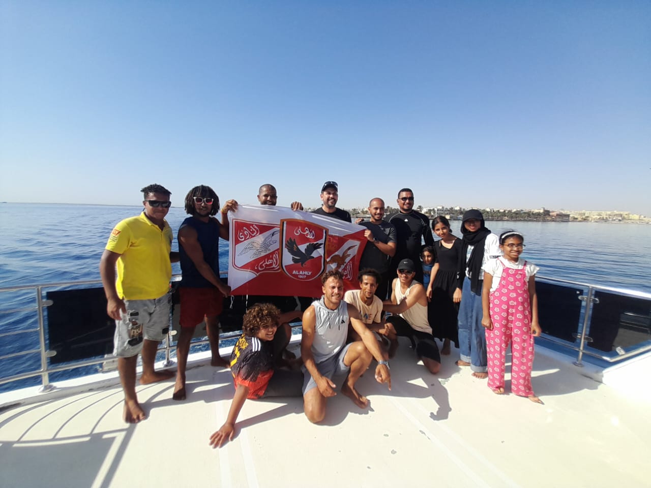 احتفال مشجعي الأهلي تحت المياه بمشاركة السياح في الغردقة