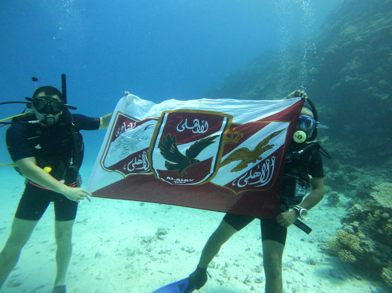 شارك السياح الأجانب من عشاق الرياضة مشجعي النادي الاهلي في احتفال خاص في قاع البحر بعلم الاهلي احتفالا بفوز النادي الاهلي علي بيراميدز في المباراة التي أقيمت مساء أمس في الدوري المصري الممتاز لكرة القدم وانتهت بفوز الأهلي بثلاثة أهداف مقابل هدفين.