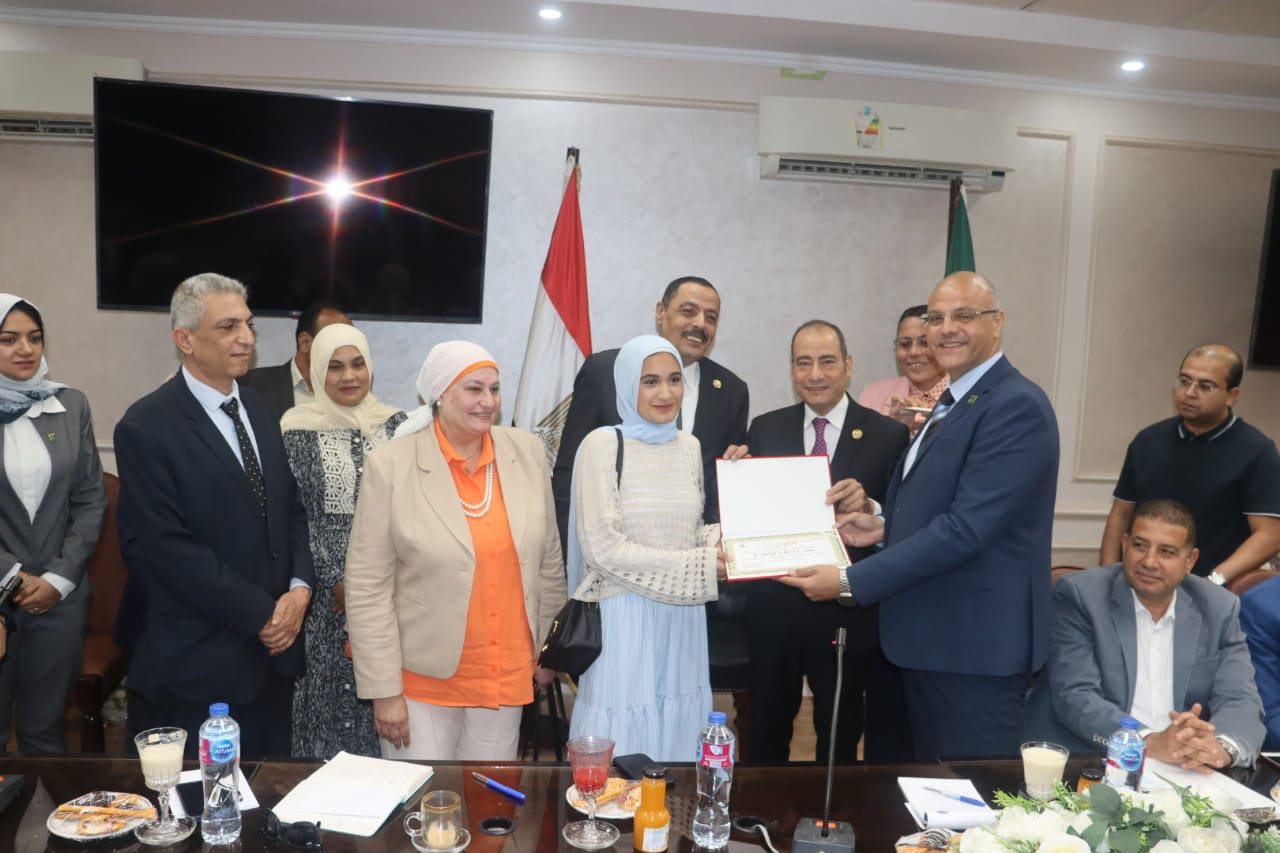 وأثناء اللقاء وبحضور  النواب قام محافظ القليوبية بتكريم الطالبة هاجر خالد إبراهيم الأولى على مستوى الجمهورية فى الدبلومات الفنية (التعليم الفني الزراعي) بشهادة تقدير متمنياً لها دوام التوفيق والسداد وجاء ذلك بحضور الأستاذة سماح إبراهيم وكيل وزارة التربية والتعليم بالقليوبية.