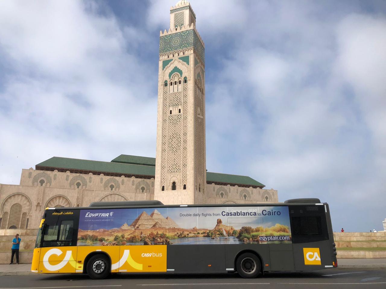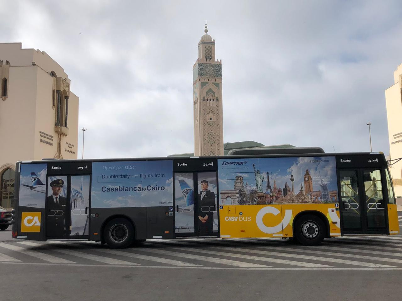 أطلقت مصر للطيران_الناقل الوطني حملة تسويقية على الحافلات بالدار البيضاء للإعلان عن زيادة عدد الرحلات بين القاهرة وكازابلانكا خلال فصل الصيف لتصبح رحلتين يوميا، وذلك في إطار الاهتمام بدعم وتنشيط حركة السياحة من وإلى جمهورية مصر العربية ولخدمة أكبر عدد من المسافرين بأعلى مستويات الراحة للاستمتاع بتجربة سفر مميزة على متن رحلات الشركة.