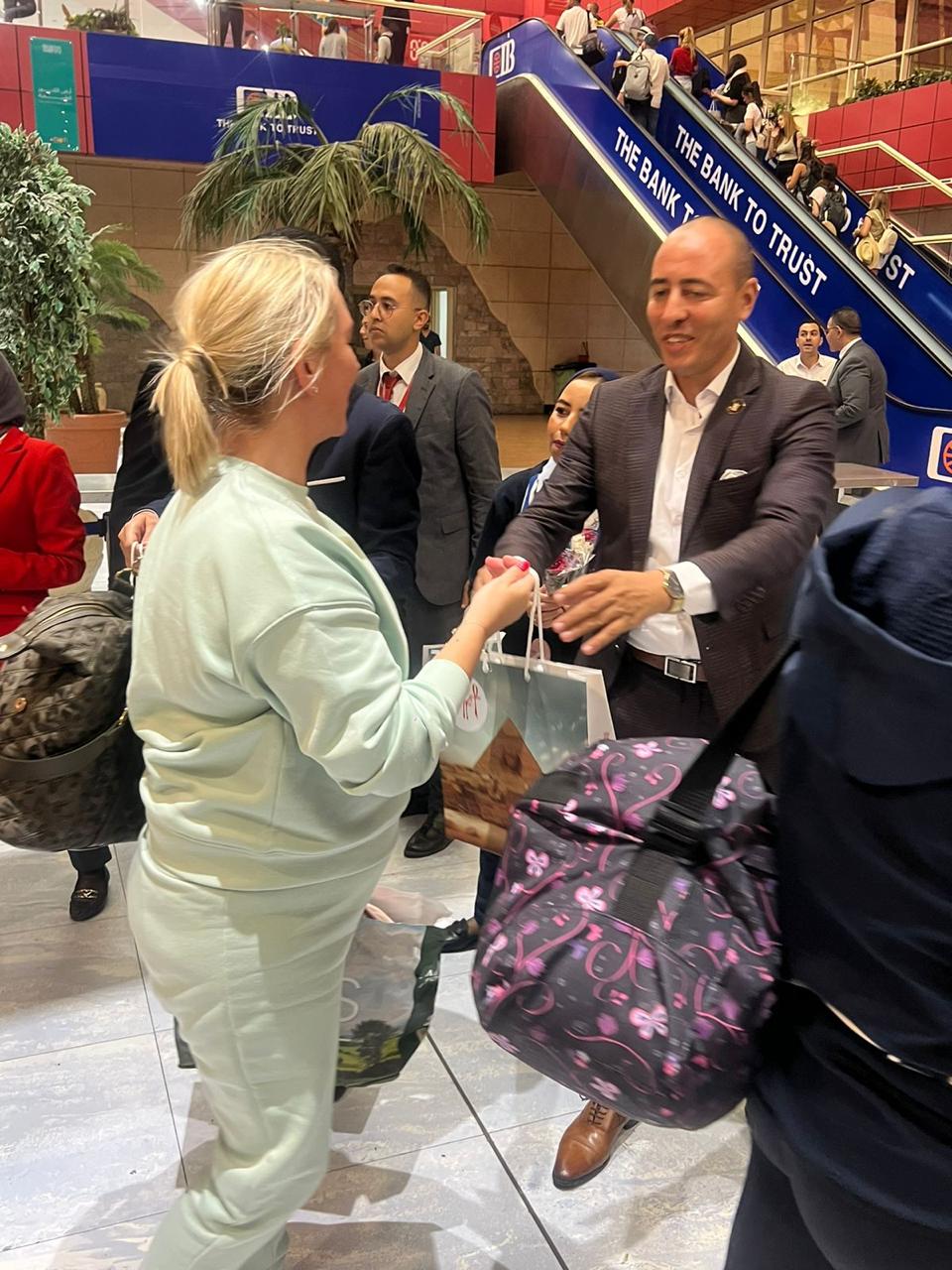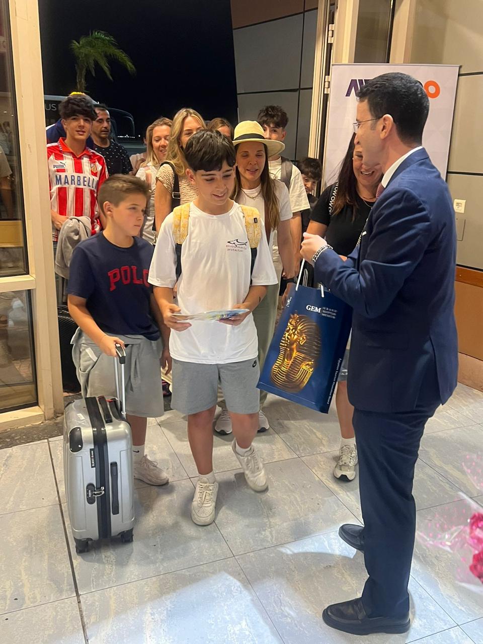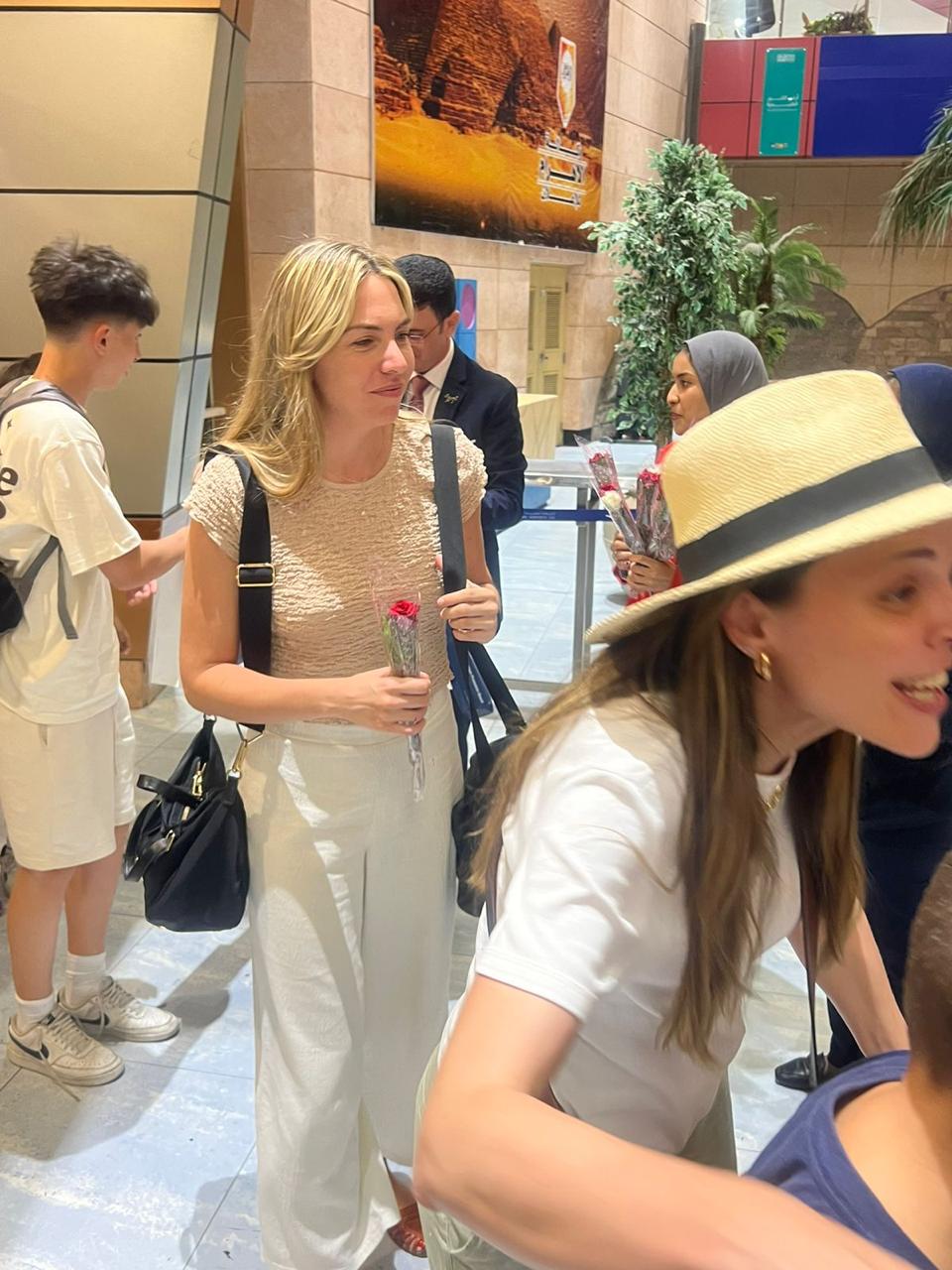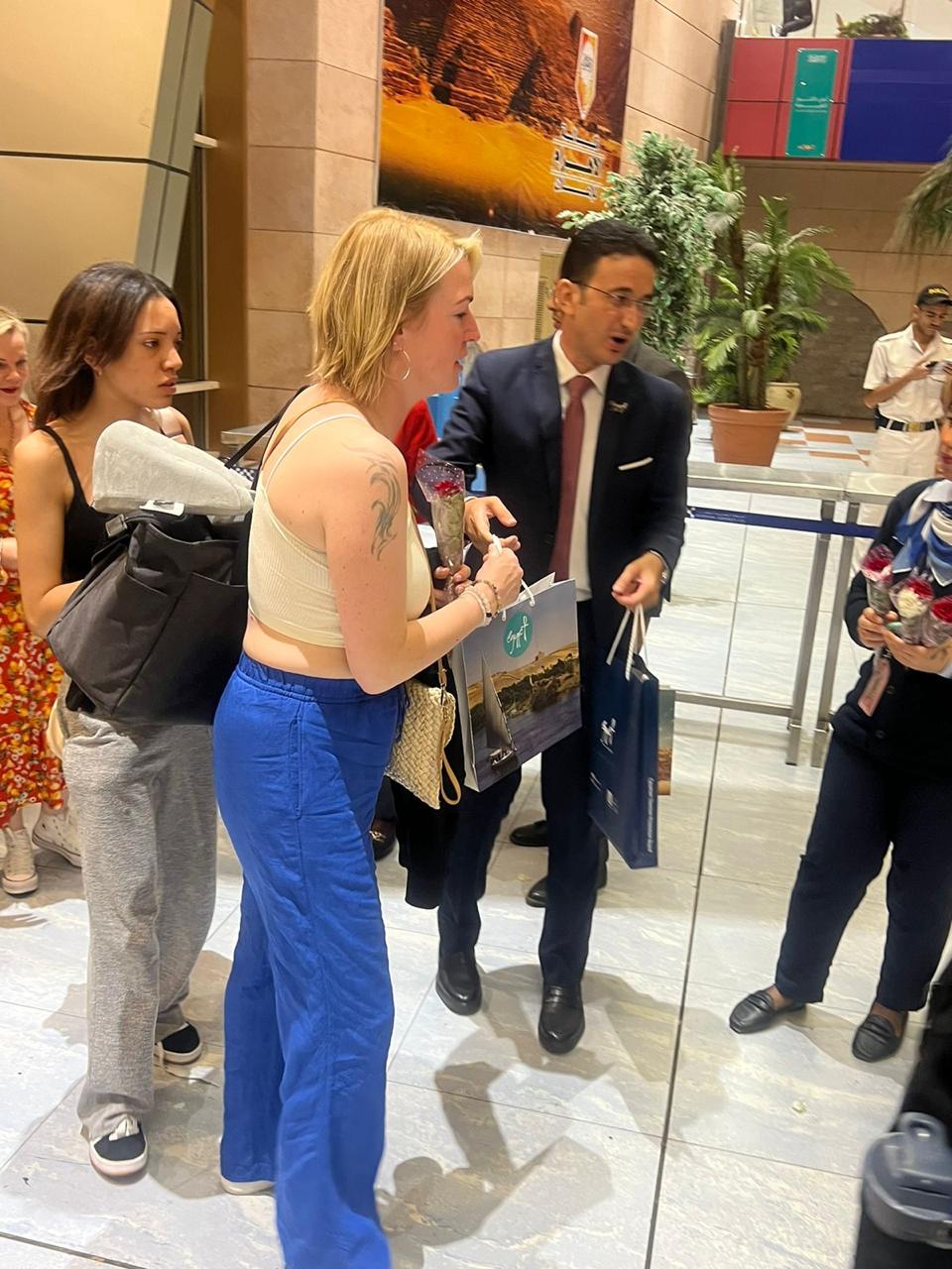 وقد كان في استقبال هذه الرحلة اللواء رماح هاشم رئيس مدينة شرم الشيخ نيابة عن السيد محافظ جنوب سيناء، بالإضافة إلى اللواء نبيل الملاح مدير مطار شرم الشيخ الدولي، والدكتور إسلام نبيل المشرف على مكتب الهيئة المصرية العامة للتنشيط السياحي بجنوب سيناء وفريق عمل العلاقات العامة بمطار شرم الشيخ الدولي؛ حيث قاموا بالترحيب بالسائحين وتقديم الورود والهدايا التذكارية لهم إلى جانب توزيع المواد الدعائية عن المقومات السياحية المتنوعة التي يتمتع بها المقصد السياحي المصري ولاسيما المدن السياحية بمحافظة جنوب سيناء.