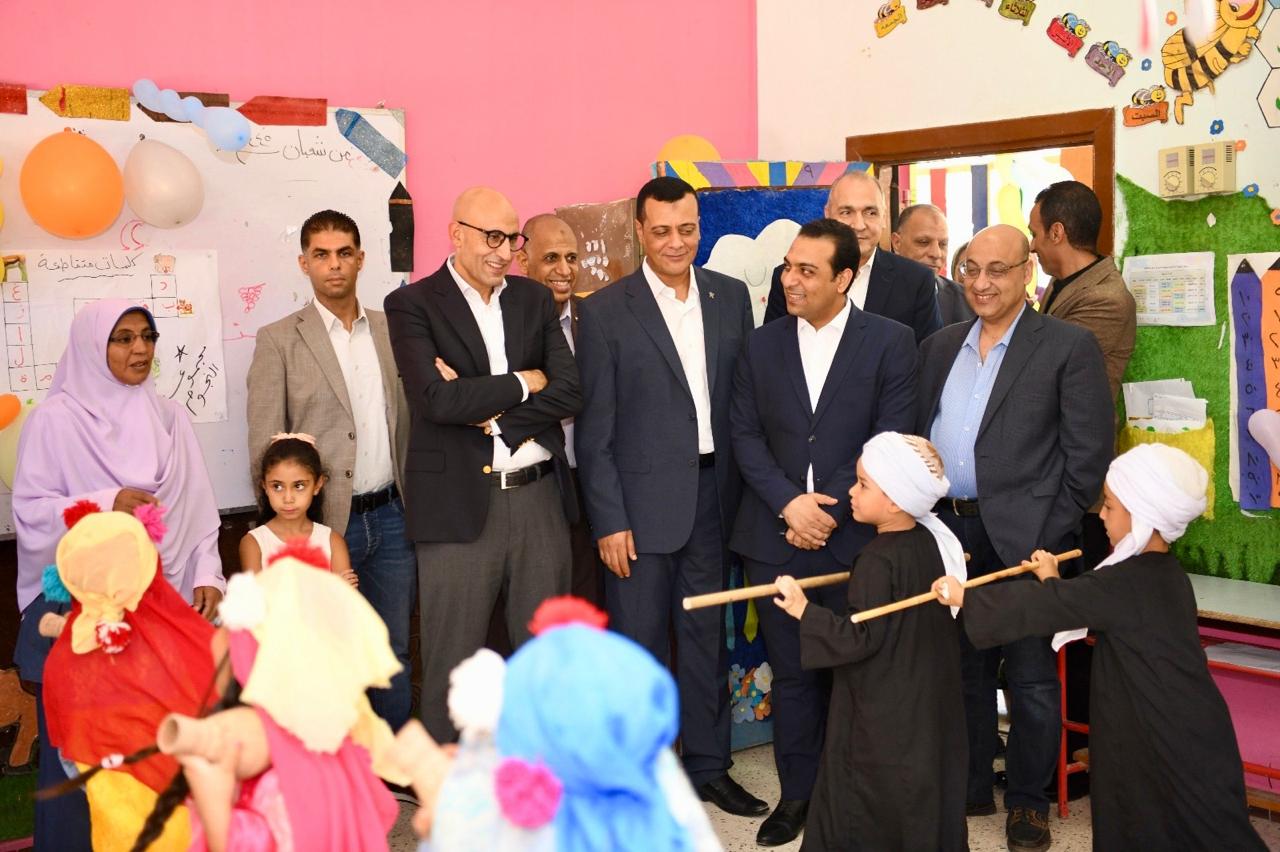 واستمع وزير التربية والتعليم من عدد من معلمات رياض الأطفال بالمدرسة لأسلوب التدريس والشرح للأطفال بالمدرسة.