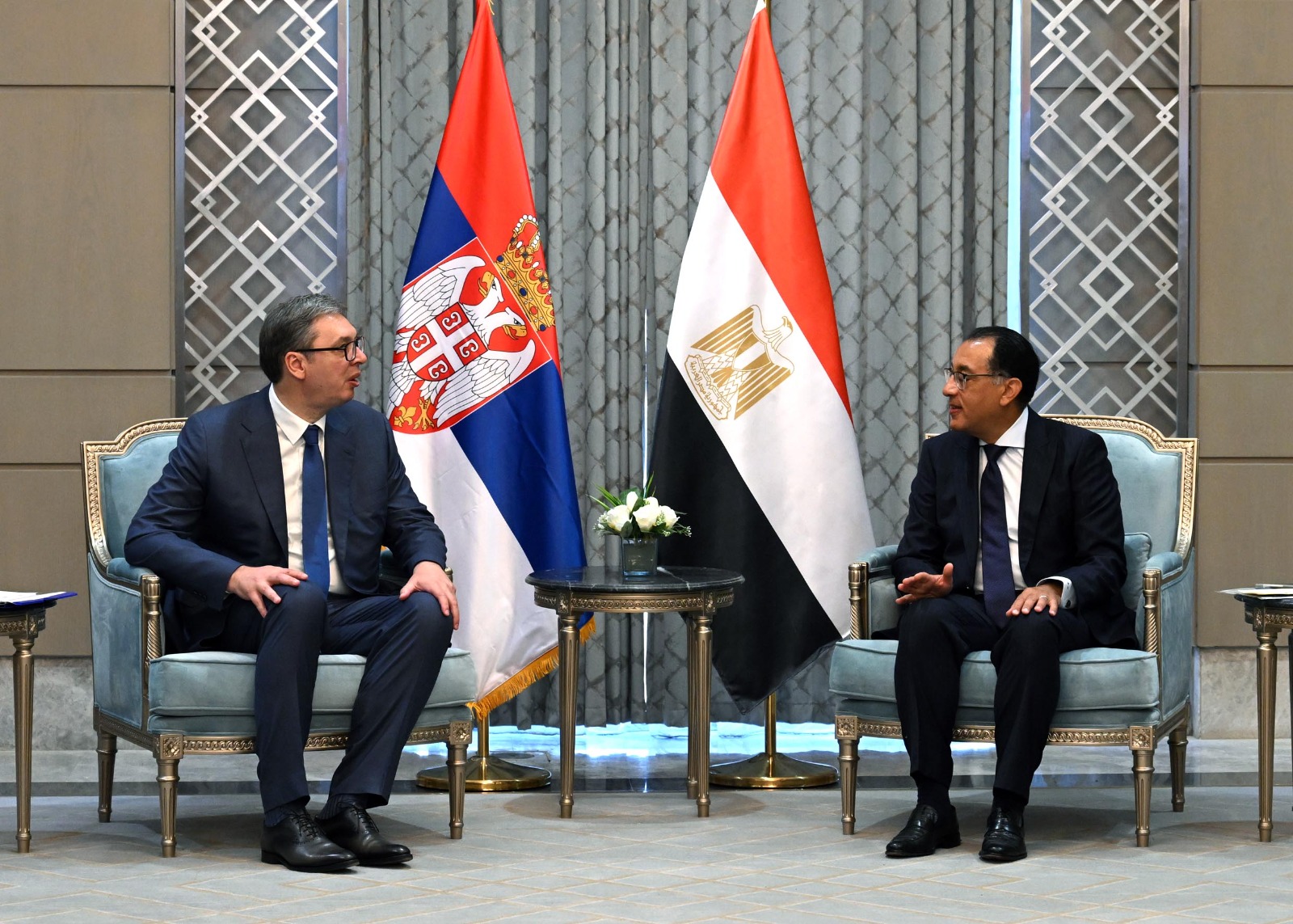 بدوره، توجّه الرئيس الصربي، خلال اللقاء، بالشكر لرئيس الوزراء على حسن استقباله بمقر مجلس الوزراء بالعاصمة الإدارية الجديدة، قائلًا: أنا منبهر حقًا بهذا المكان الرائع، شكرًا لهذه الدعوة الكريمة لزيارة هذا المعلم المبهر، حيث حرص رئيس الوزراء قبل اللقاء على اصطحاب ألكسندر فوتشيتش إلى نقطة مشاهدة لرؤية معالم العاصمة الإدارية الجديدة.