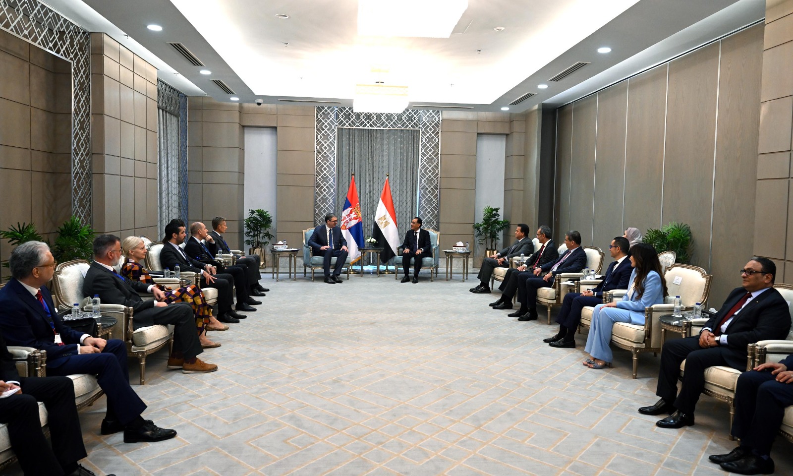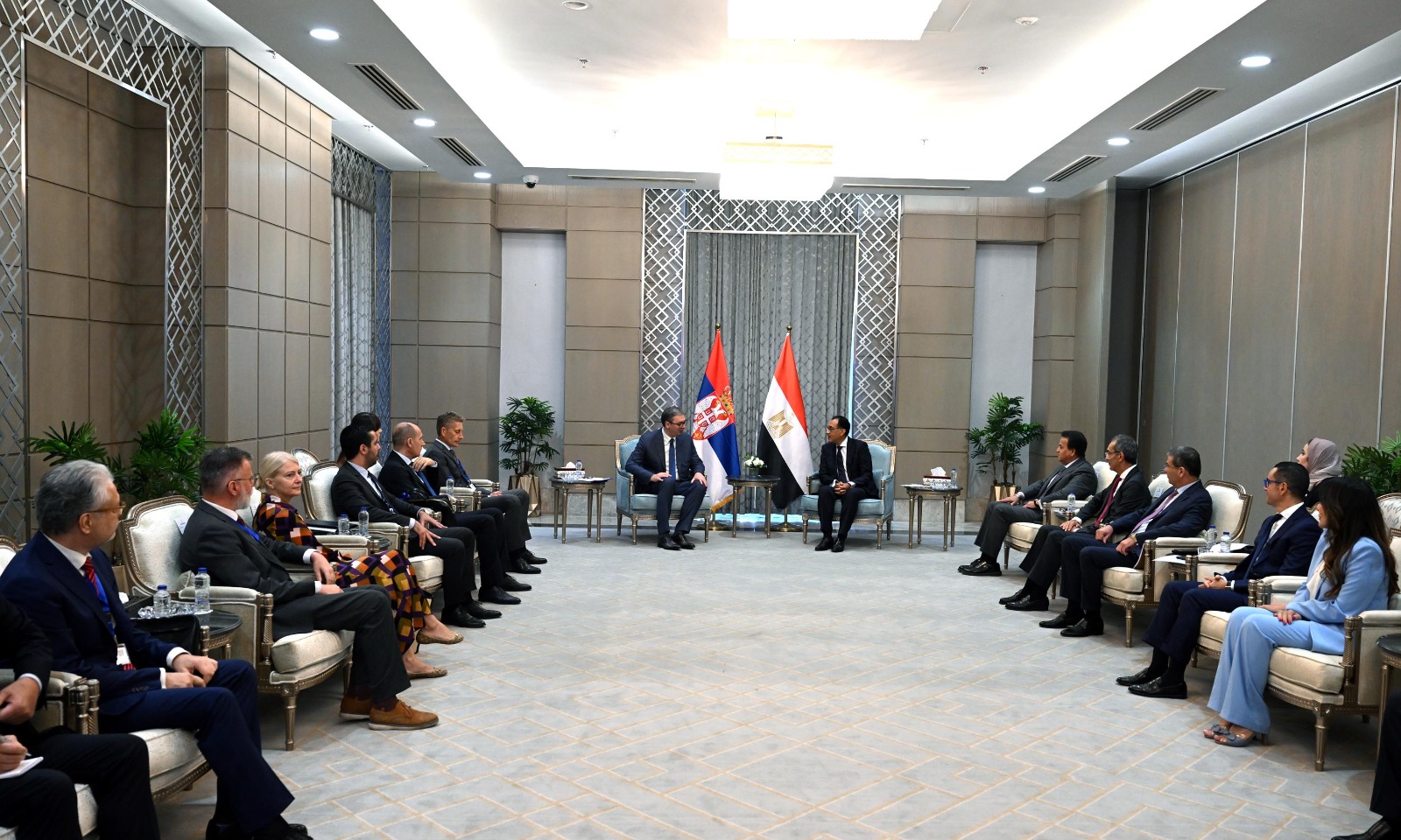 وحضر اللقاء من الجانب المصري كل من: الدكتور خالد عبدالغفار، نائب رئيس الوزراء لشئون التنمية البشرية، وزير الصحة والسكان، والدكتور عمرو طلعت، وزير الاتصالات وتكنولوجيا المعلومات، و علاء الدين فاروق، وزير الزراعة واستصلاح الأراضي، والمهندس حسن الخطيب، وزير الاستثمار والتجارة الخارجية، والسفير باسل صالح، سفير مصر لدى دولة صربيا.