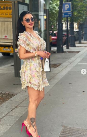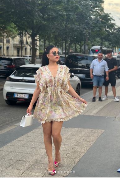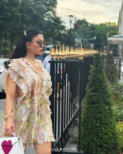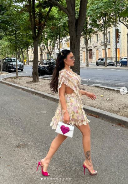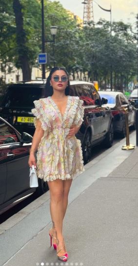 وبدت هيفاء وهبي بإطلالة ساحرة مستوحاه من جاذبية زهور الربيع، لتواكب أحدث صيحات موضة 2024، حيث ارتدت فستان مجسم، قصير، صمم من قماش ناعم بطبعة الزهور مع التل المزين بالدانتيل من الأطراف، لتبرز رشاقة قوامها ووزنها المثالي، فيما انتعلت صندلًا بكعب عال مرصع بحبات الكريستال.