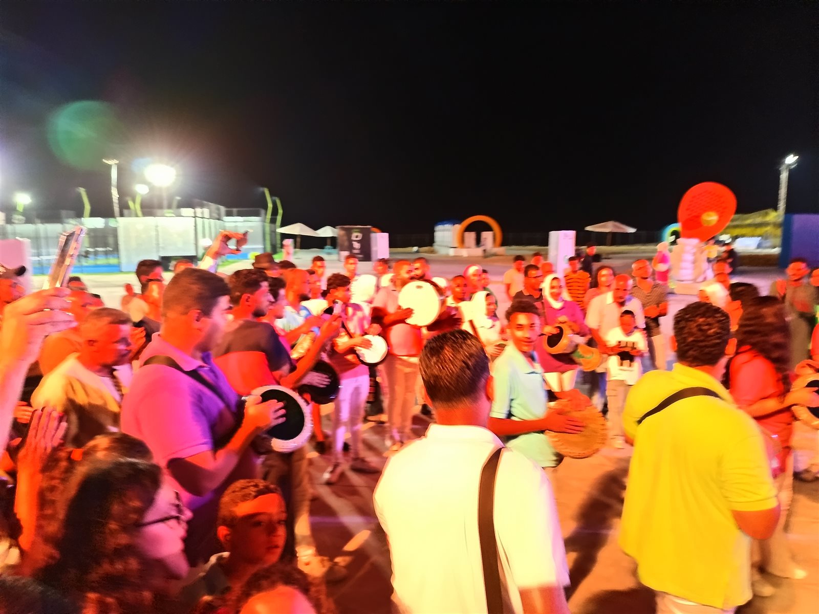 وقدمت الأنفوشي للإيقاعات الشرقية بقيادة الفنان عزت بسيوني مجموعة من عروضها وذلك على الممشى السياحي بمدينة العلمين.